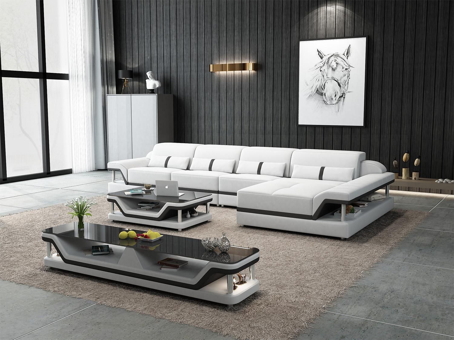 Leder Moderne Couch Wohnlandschaft Ledersofa Sofagarnitur Sofa L Form Couchtisch