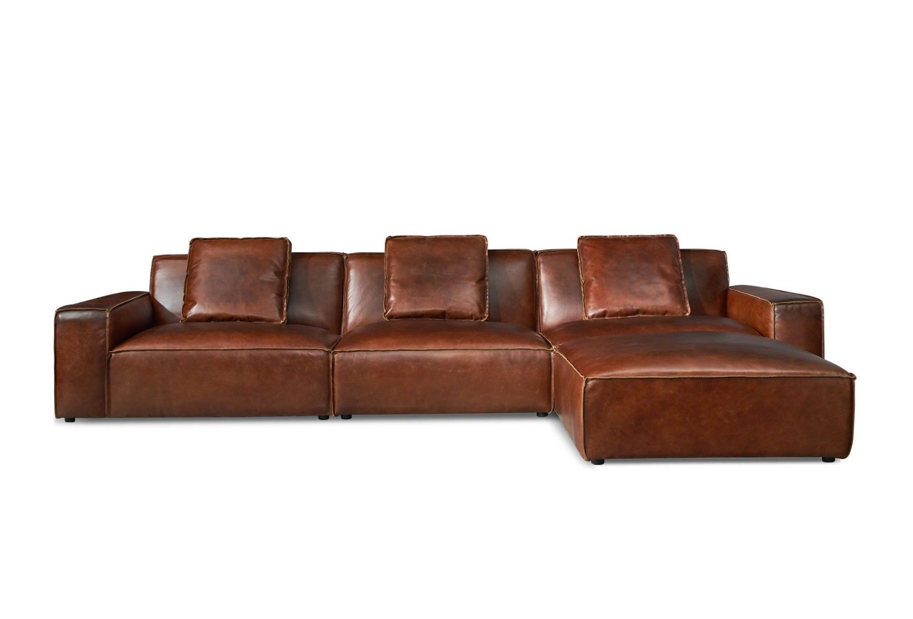 Ledersofa Lancaster - Ecksofa aus Rindsleder im Loft-Stil