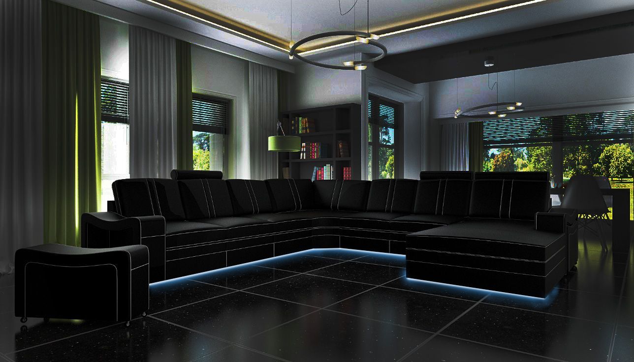 Ledersofa mit USB Wohnlandschaft Ecksofa Neu Garnitur Sofa XXL Ledersofa Couch
