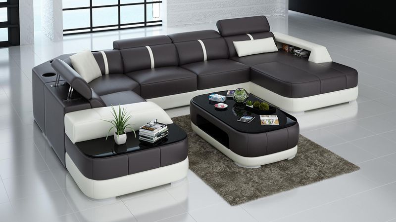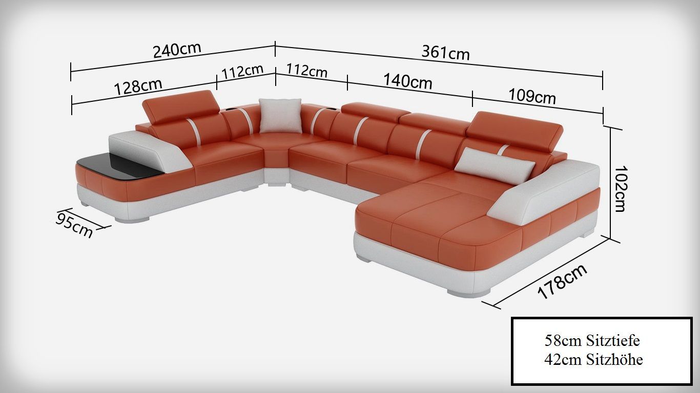 Ledersofa Polster Sitz Eck Sofa Garnitur Wohnlandschaft Wohnzimmer Couch mit USB