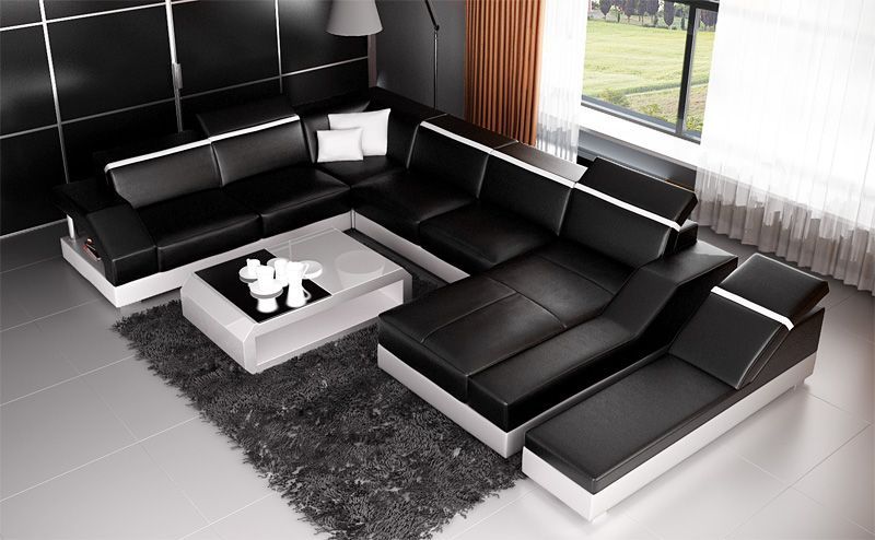Ledersofa Sofa Couch Wohnlandschaft Ecksofa Garnitur Design Modern Sofa mit USB