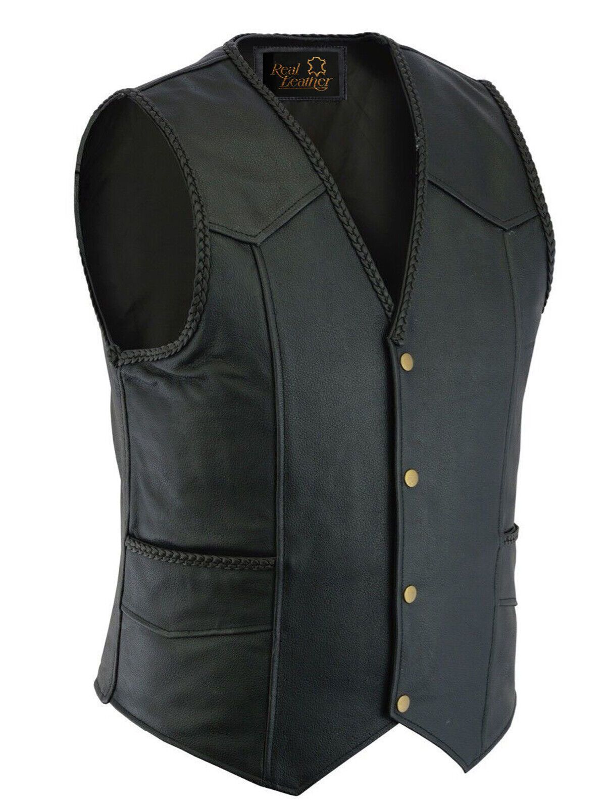 Lederweste KUTTE Motorrad Chopper ROCKER CLUB LEDER WEST Geflochten Gr S - 5XL
