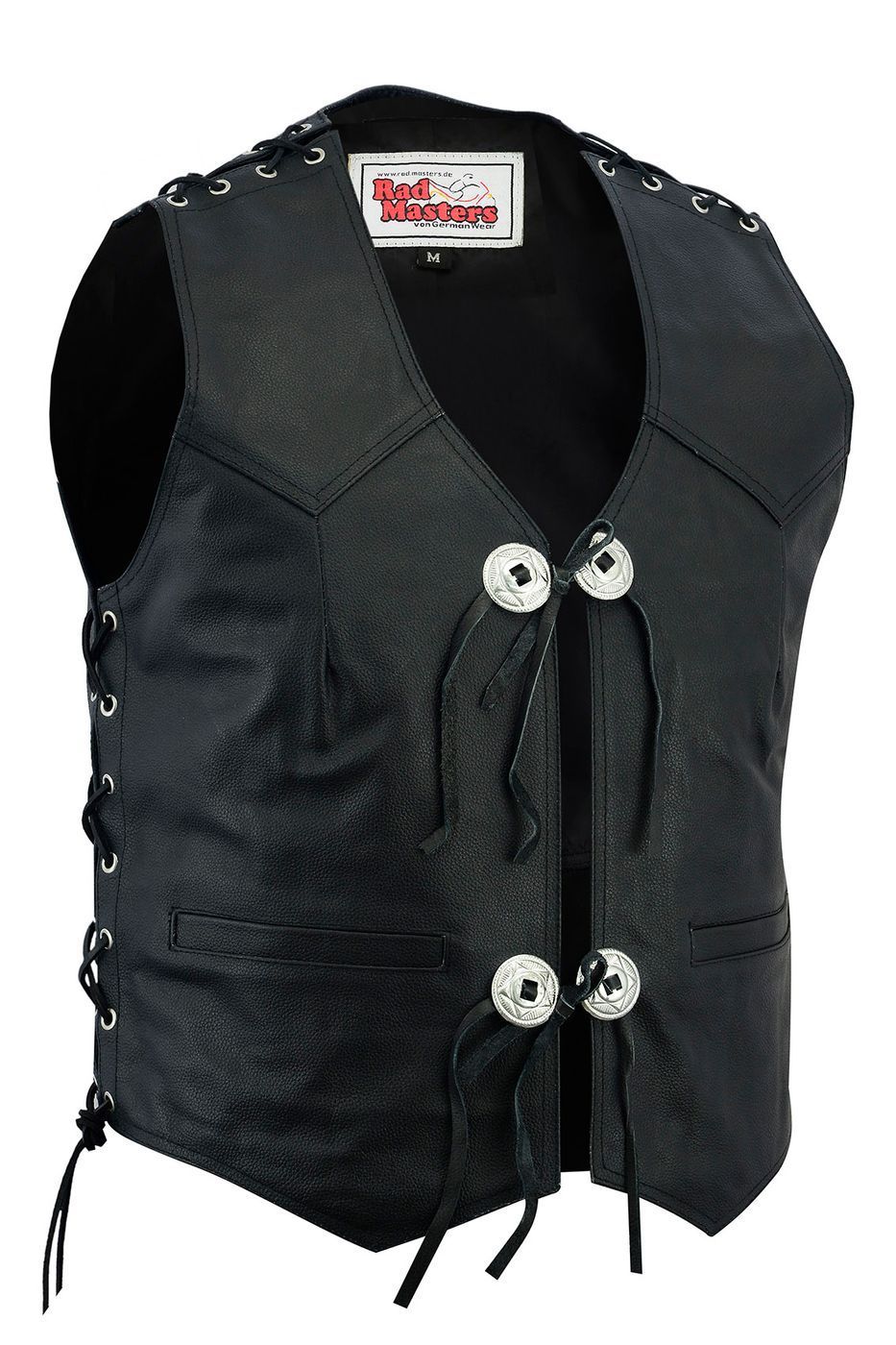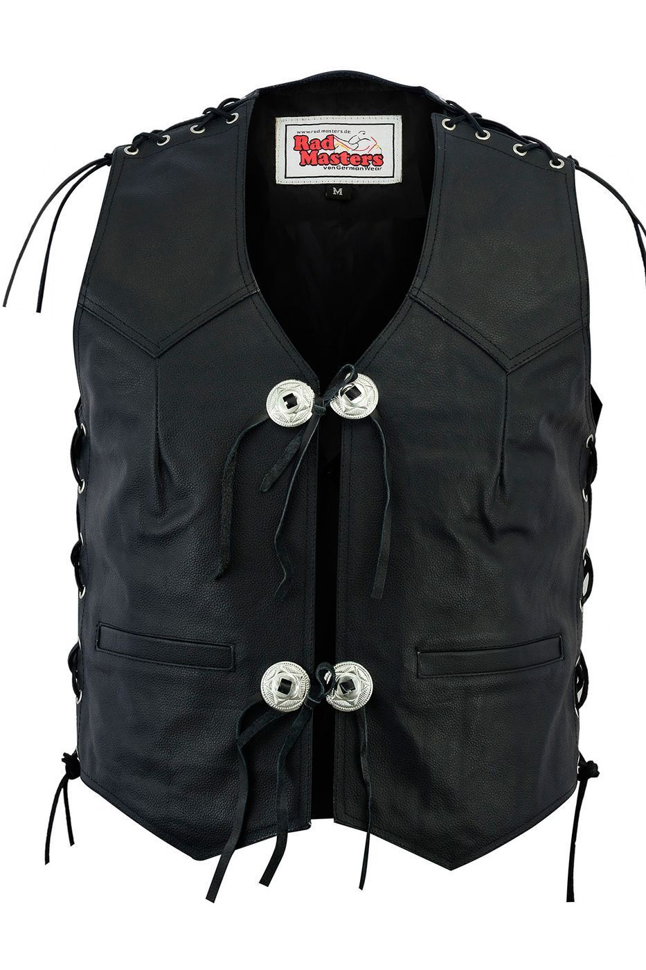 Motorrad Concho Weste aus echtem Rindsleder (Spaltleder), schwarz