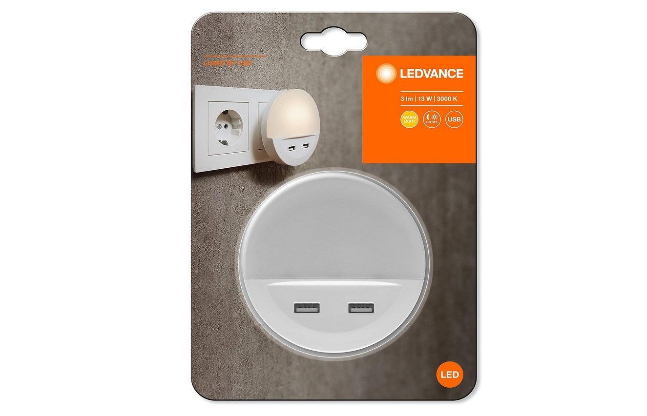 Ledvance LED Nachtlicht Lunetta USB – Warmweiß Tag/Nacht-Sensor Steckdose USB-Ausgang