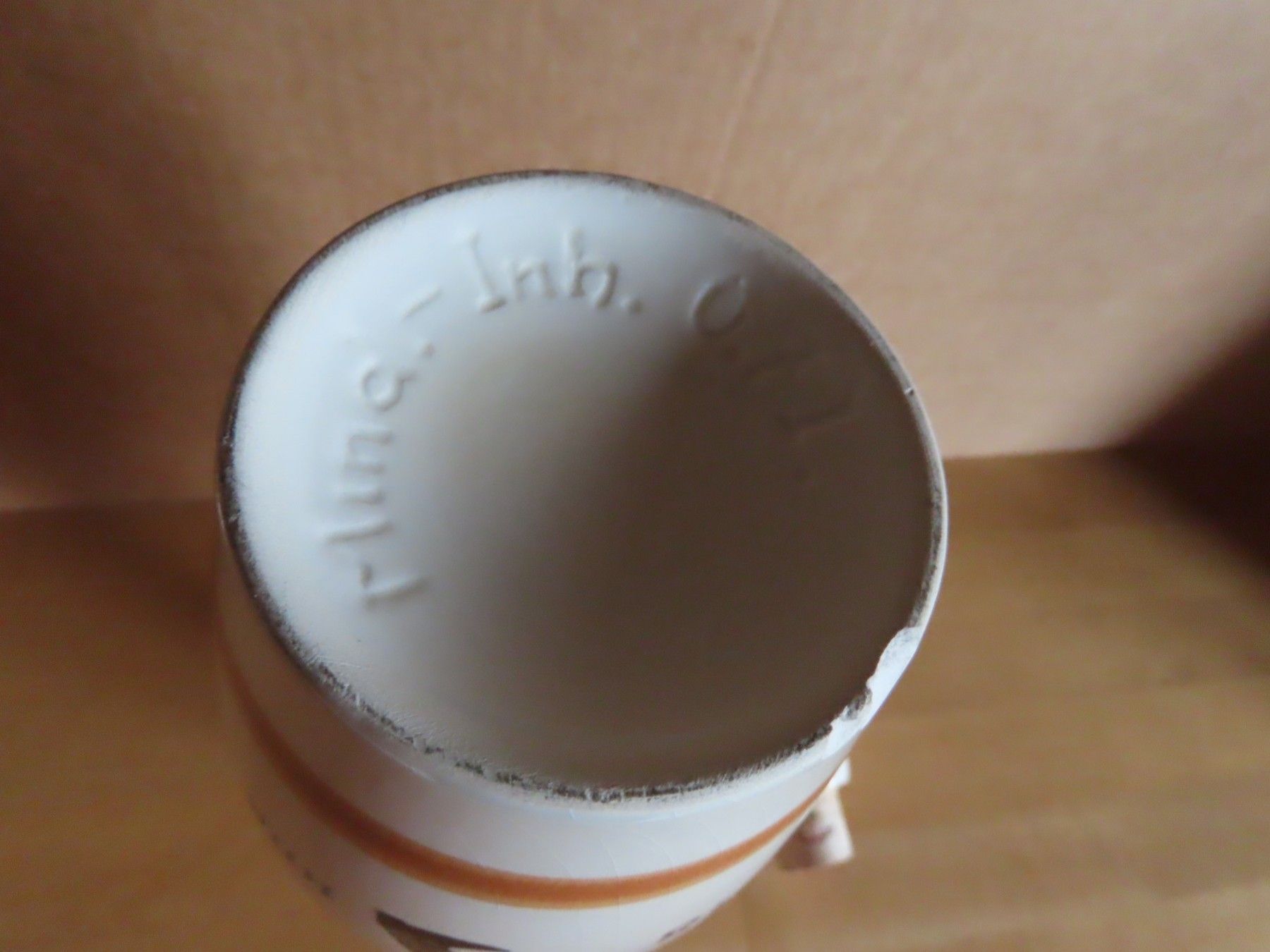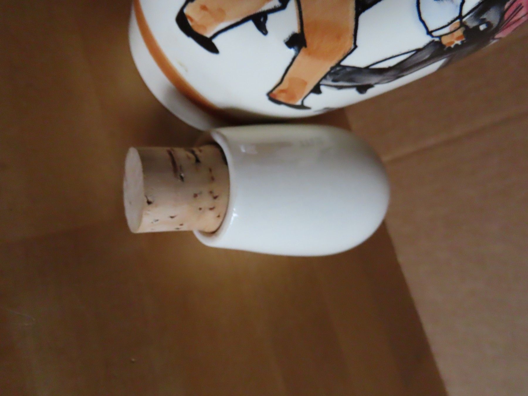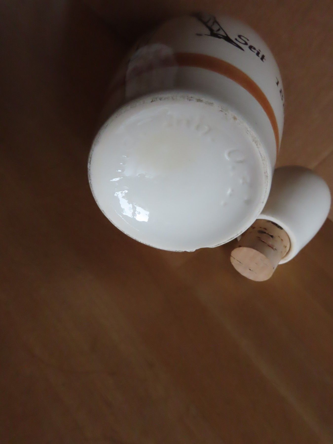 * Zustandsbeschreibung: ist leicht verschmutzt, der Korken ist leicht verformt, an der unteren Kante sind Absplitterungen