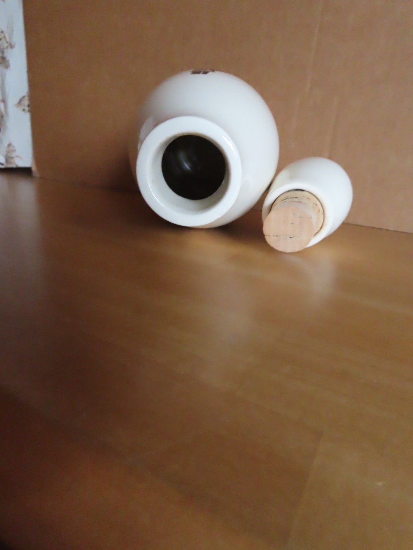 Maße: ca. 9,5 cm Durchschitt und ca. 32 cm hoch ----immer die breiteste Stelle gemessen der Standfuß hat einen Durchmesser von ca. 6,5 cm Fasst ca. 0,7L Material: Keramik ist leicht verschmutzt, der Korken ist leicht verformt und an der unteren Kante sind Absplitterungen... Mehr