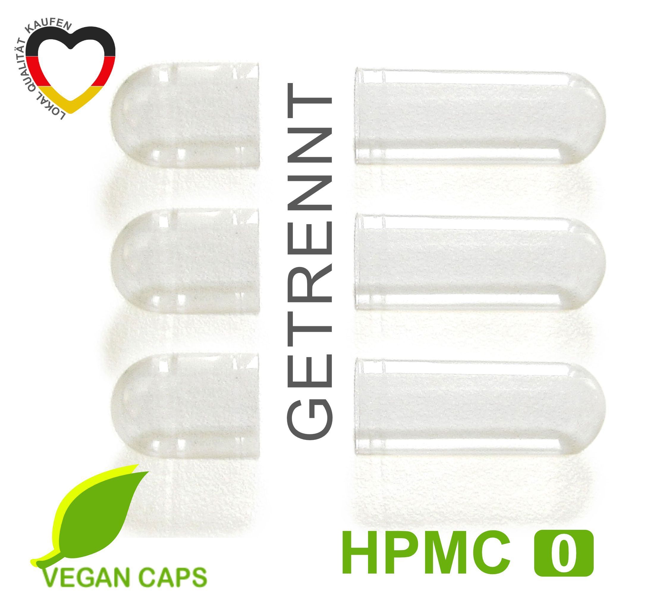 Leerkapseln • HPMC transparent leere Kapseln vegan Größe 0 • getrennte Hälften