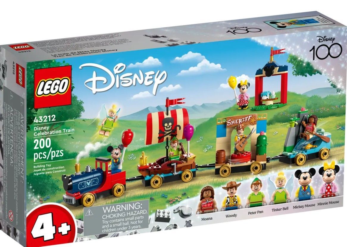 Artikel: Lego Disney Geburtstagszug (43212) Ein Set aus Bahnhof, Lok, 3 Waggons und 6 LEGO Minifiguren: Micky Maus, Minnie Maus, Vaiana, Peter Pan, Tinker Bell und Woody. Das 200-teilige Set besteht aus einer Lok, 3 Waggons Motivwagen, einem Bahnhof, 6 LEGO® Minifiguren Der vollständige Zug ist