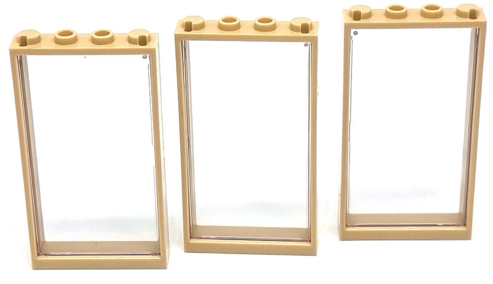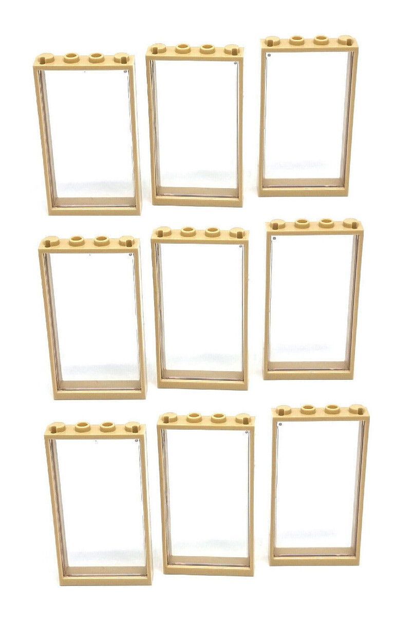 LEGO LEGO Fenster 1x4x6 Rahmen beige mit glaseinsatz transparent / 9 Stück