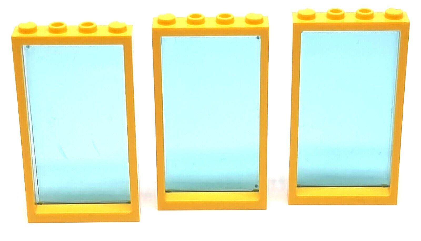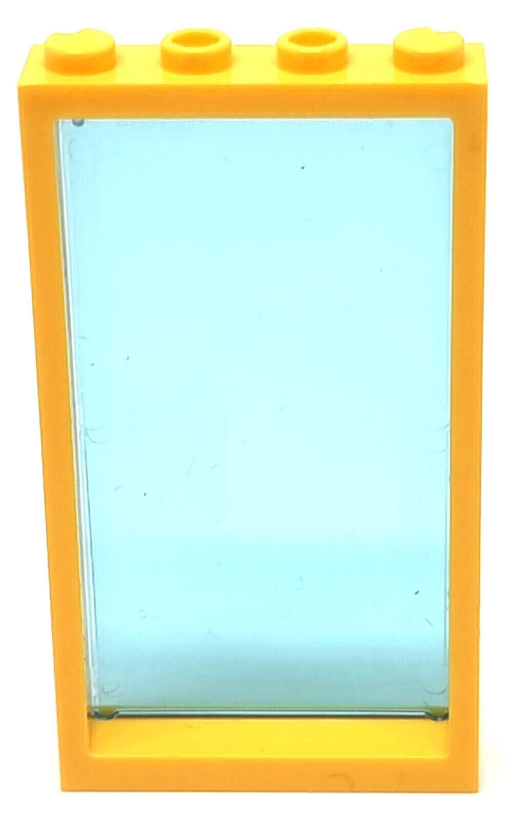LEGO Fenster 1x4x6 Rahmen gelb mit glaseinsatz blau transparent / 9 Stück