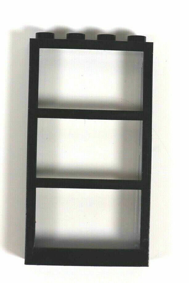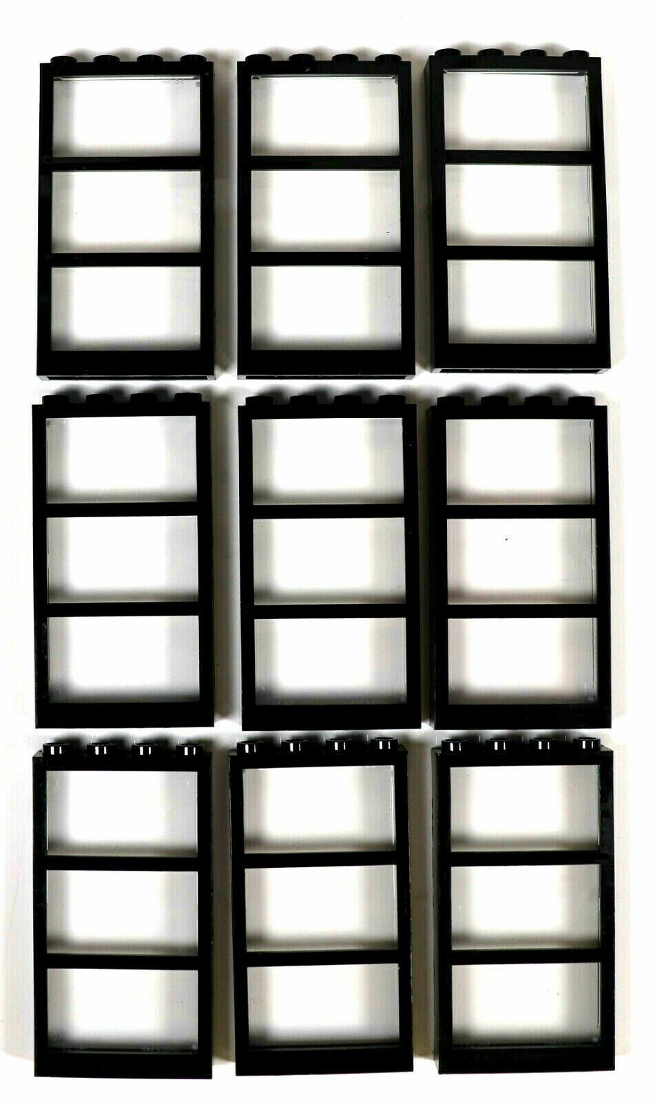 LEGO Fenster 1x4x6 Rahmen mit Sprossen schwarz / mit glaseinsatz klar / 9 Stück