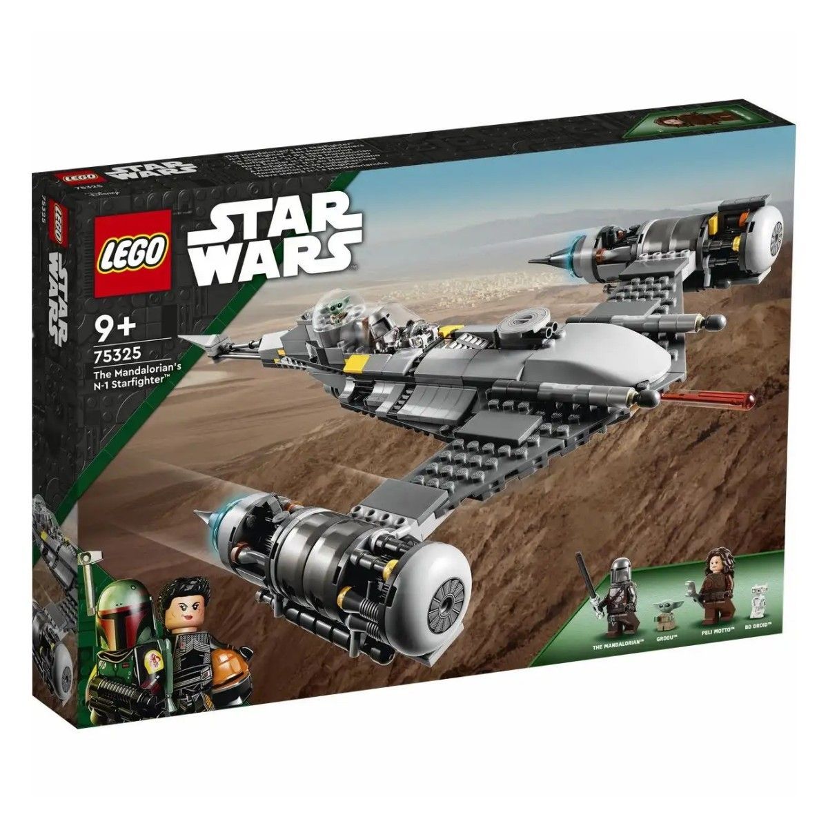 Der N-1 Starfighter des Mandalorianers (75325) aus Star Wars: Das Buch von Boba Fett. Mit diesem detailgetreuen Bauspielzeug können Fans die Geschichten auf Tatooine darstellen 4 Star Wars-Charaktere und 2 LEGO ® Minifiguren - der Mandalorianer mit Blaster-Pistole und Raketenrucksack sowie Peli Mott