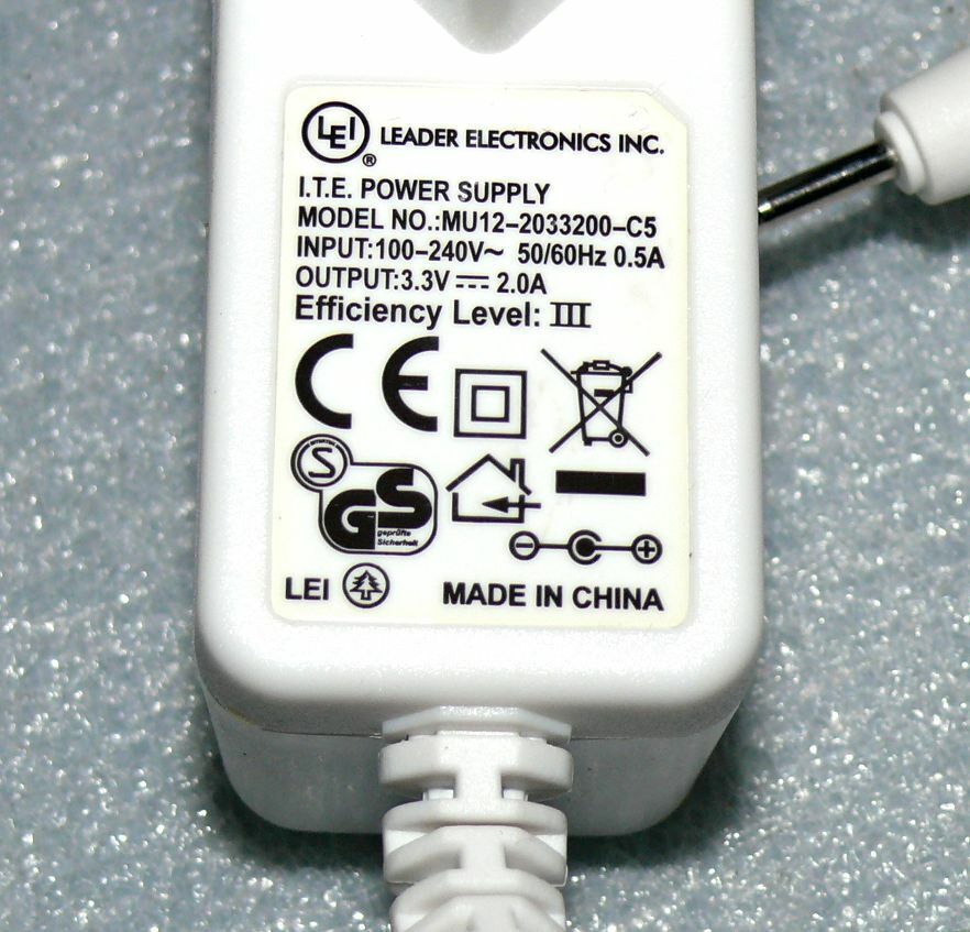 LEI MU12 2033200 HP Netzteil Ladekabel Strom Adapter DC 3,3V 2.0A Weiß 2,1 - 1,1