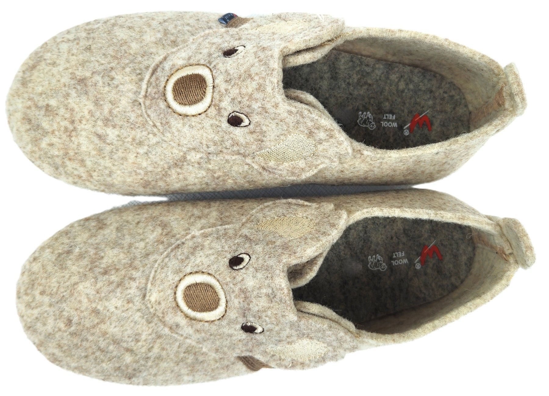 Leichte Kinder Hausschuhe Gr. 28 bis Gr. 34 Wollfilz - 100% Wolle - * KOALA* Klettverschluss Creme Beige *** Obere- und Innenseite besteht aus Natur filz - 100% Wolle *** Klettverschluss für einfaches An- und Ausziehen *** Flexible Gummisohle *** Die Schuhe haben richtige Größe *** Made in Poland Na