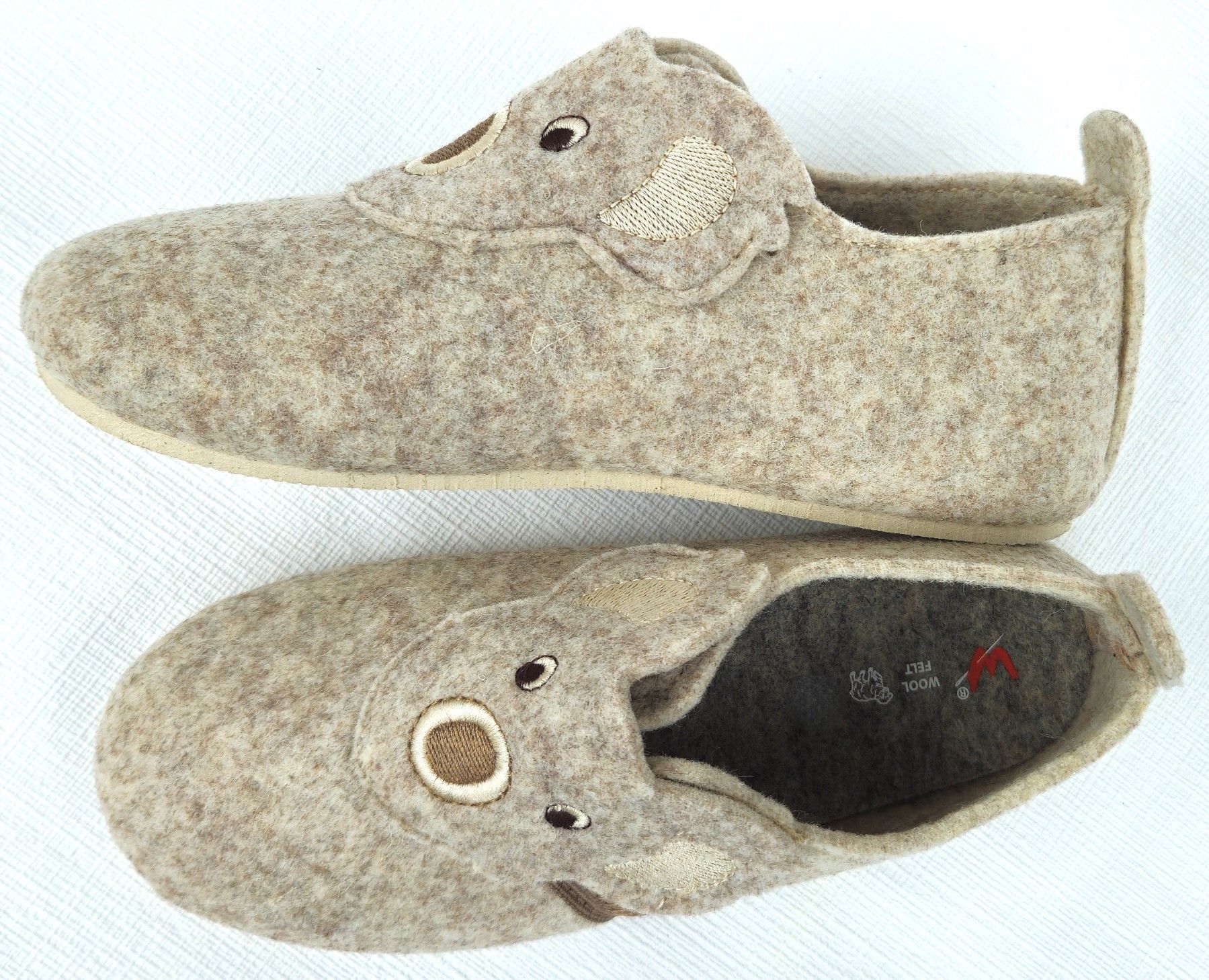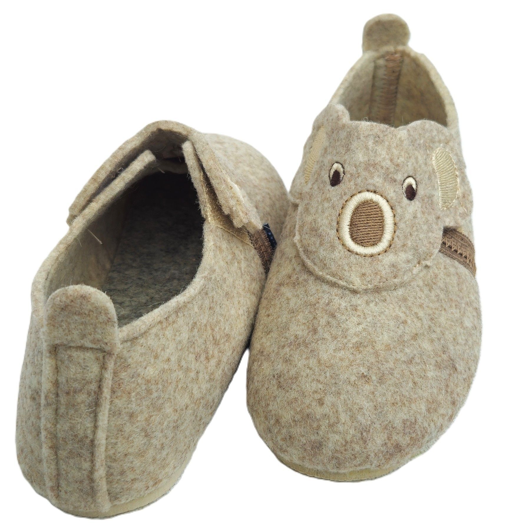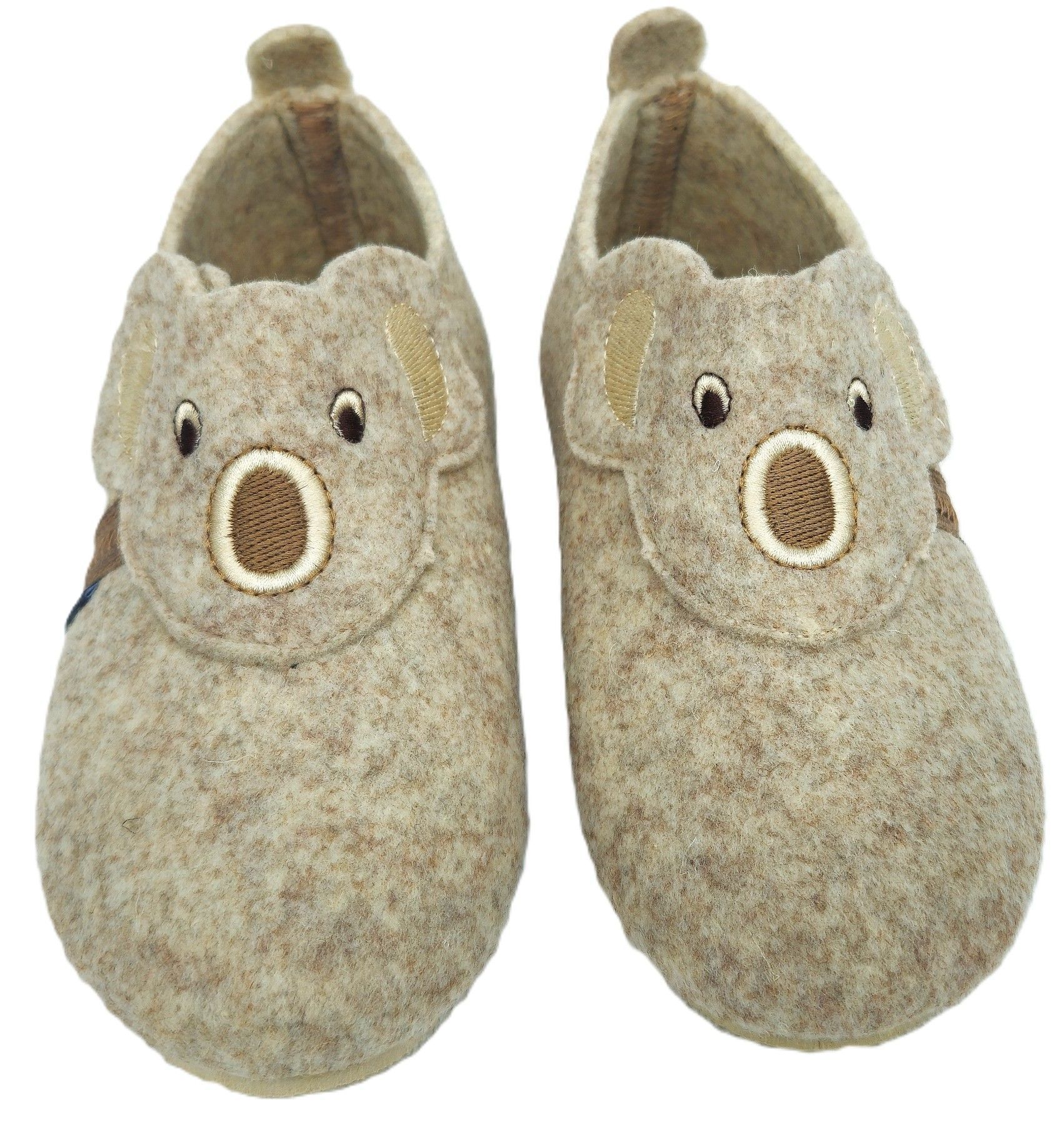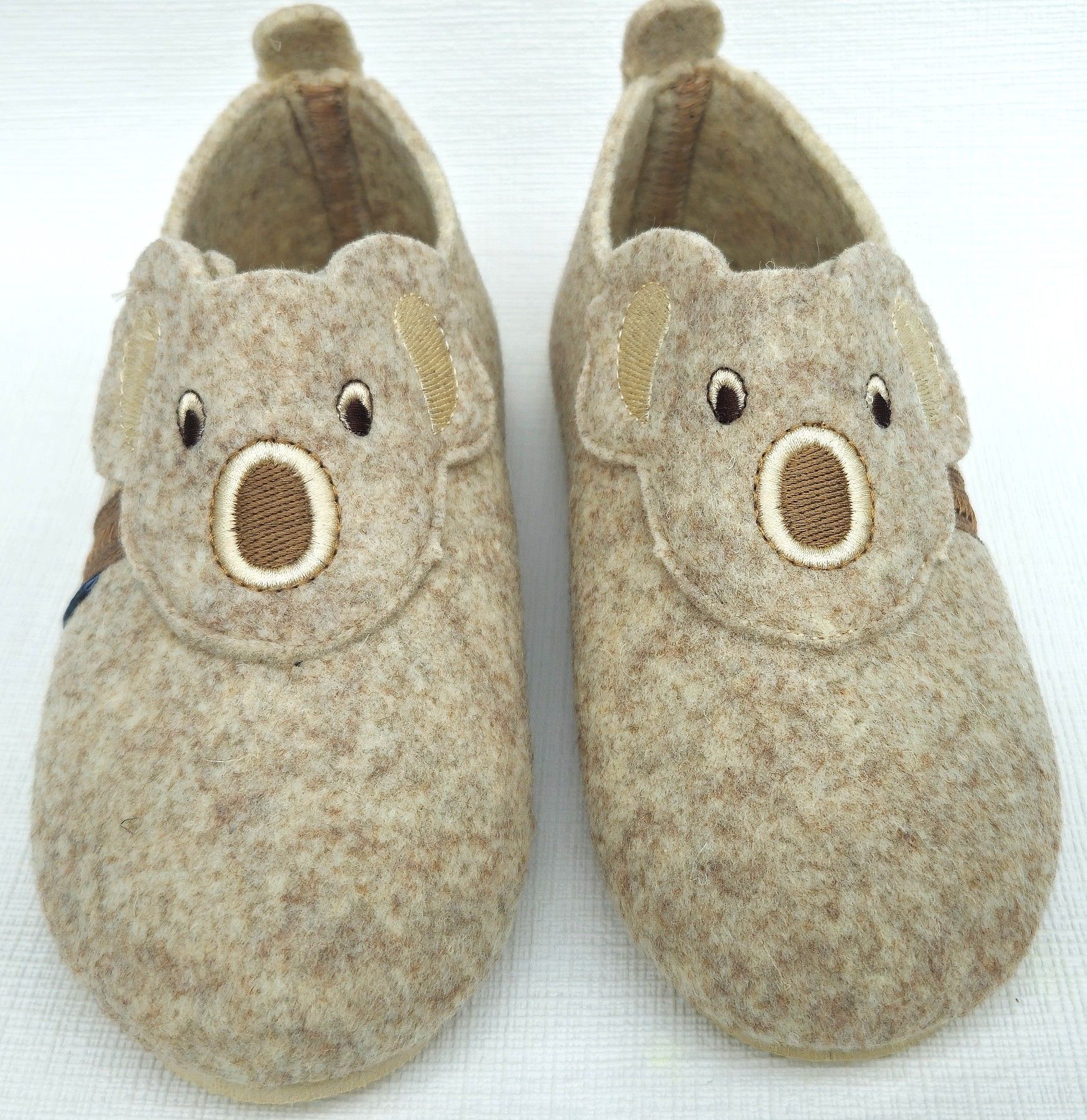 Leichte Kinder Hausschuhe Gr.28 bis 34 - 100% Wolle Filz- KOALA Klettverschluss