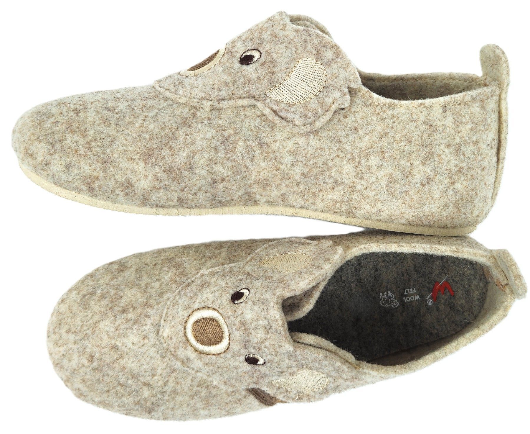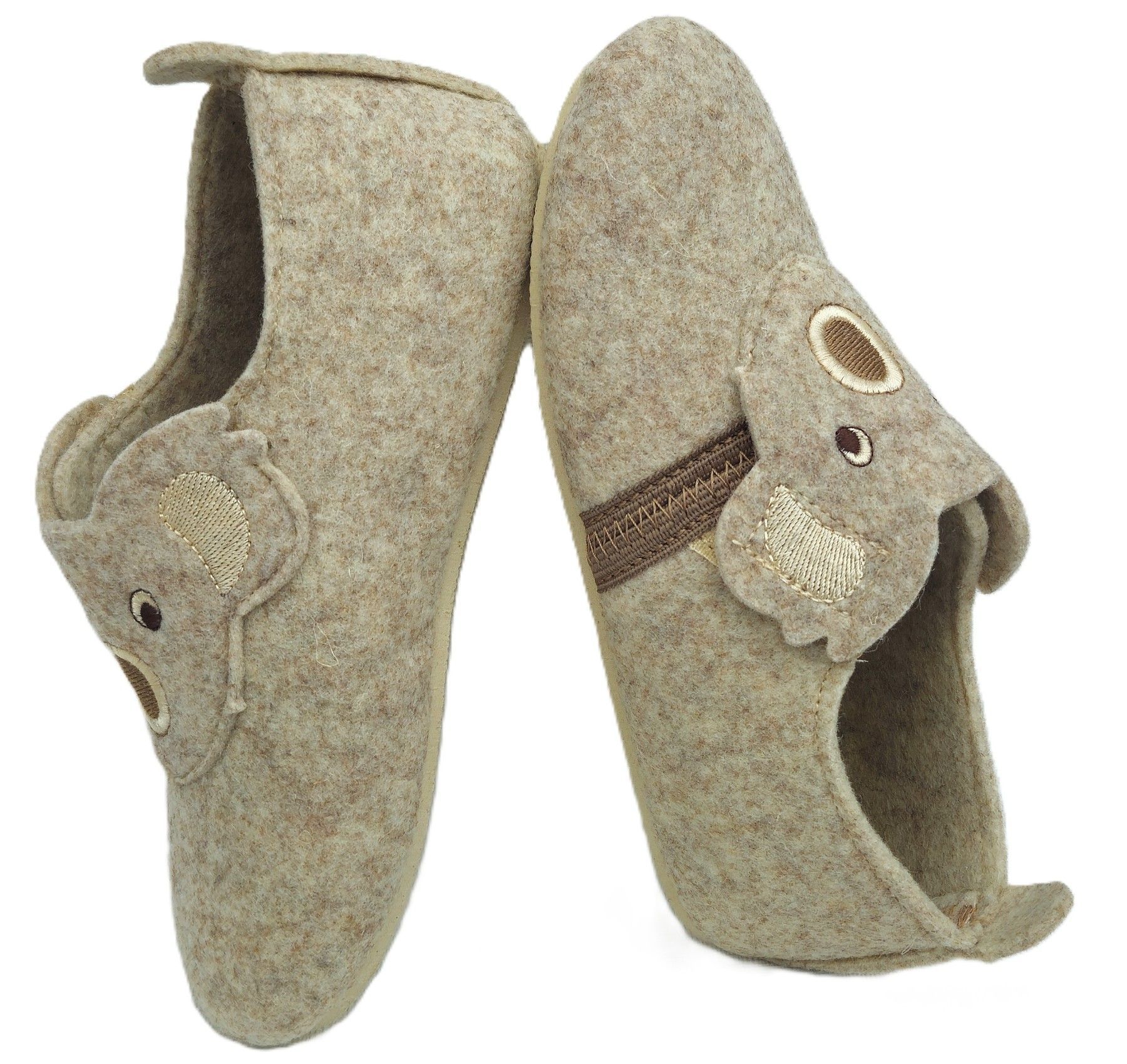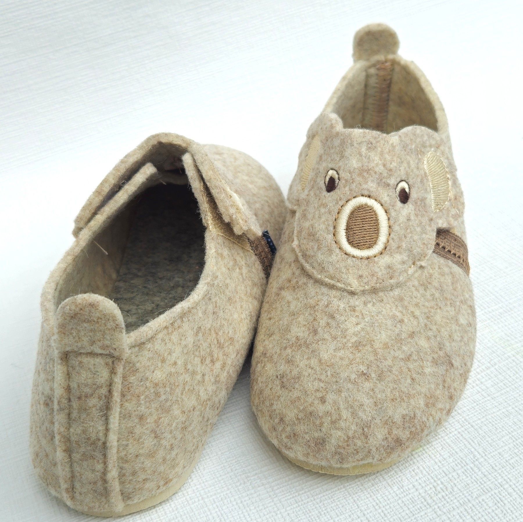 Leichte Kinder Hausschuhe Gr.28 bis 34 - 100% Wolle Filz- KOALA Klettverschluss