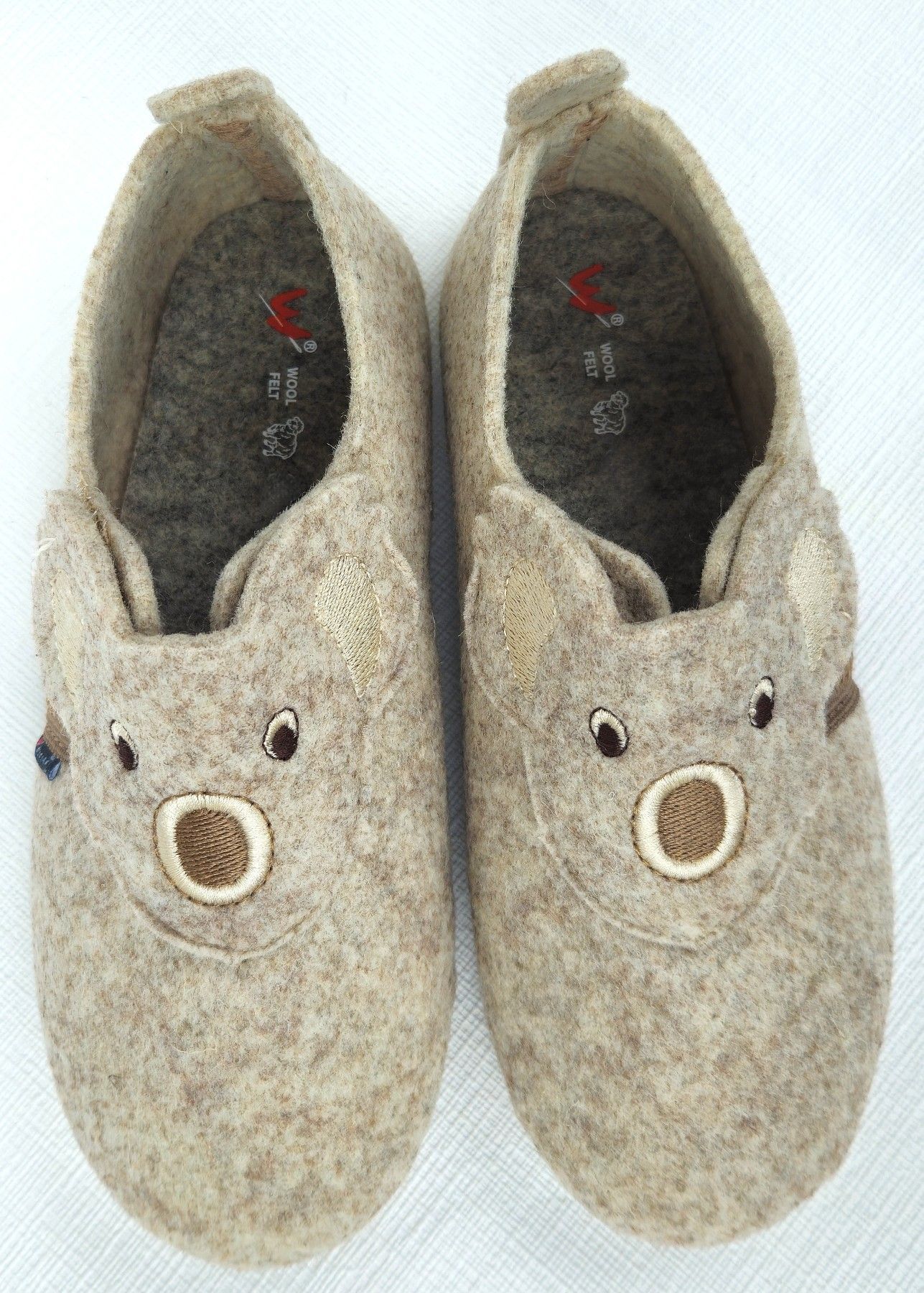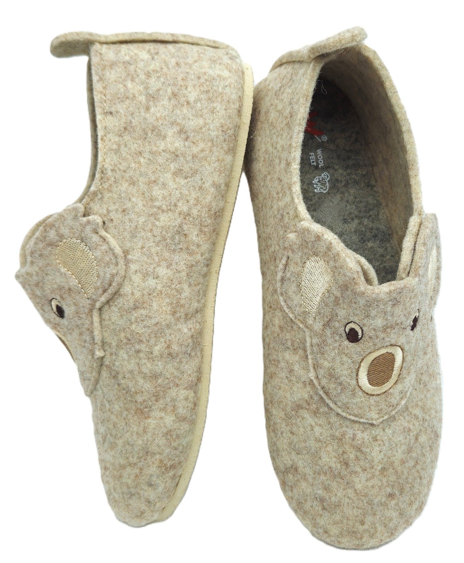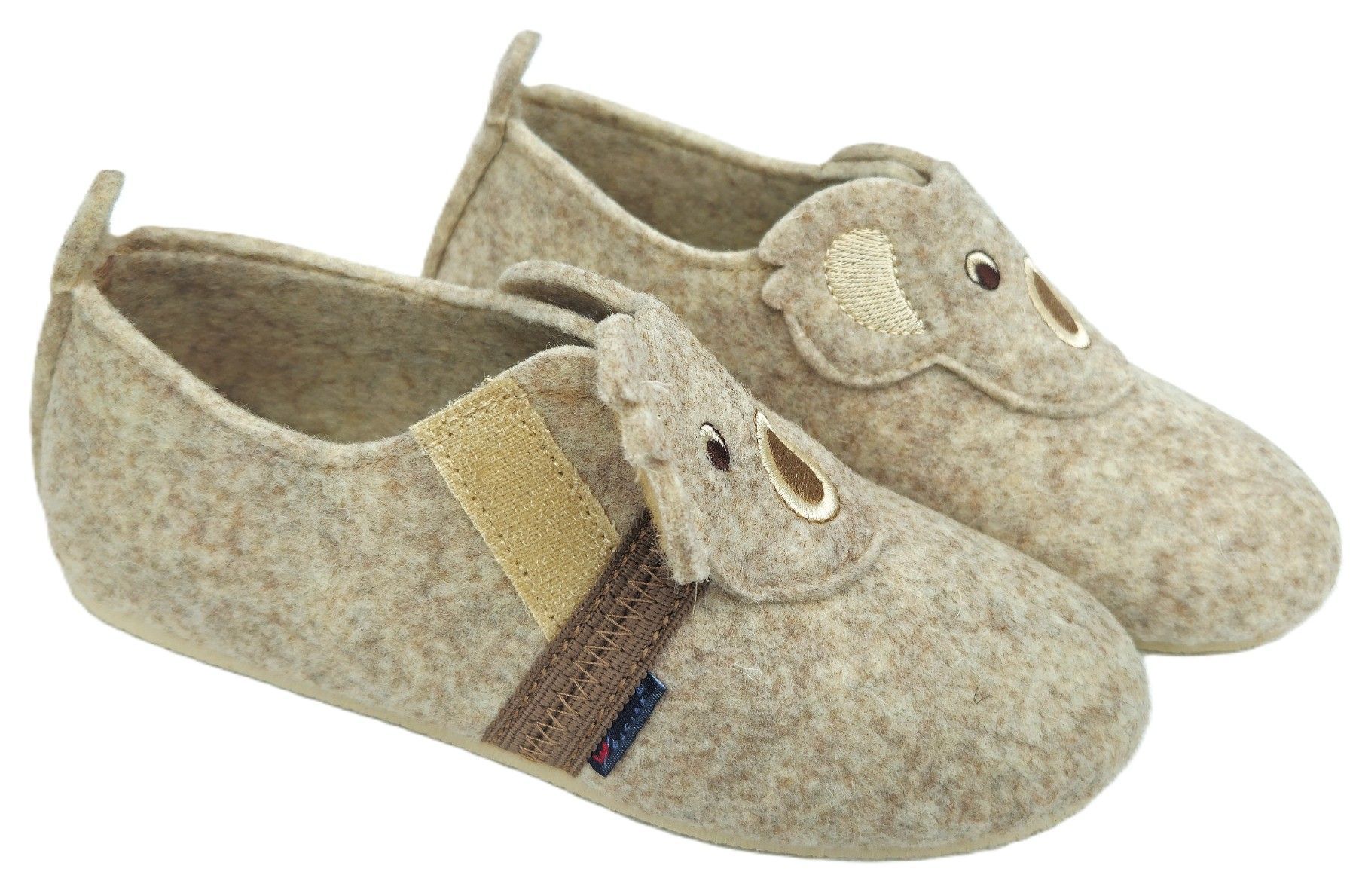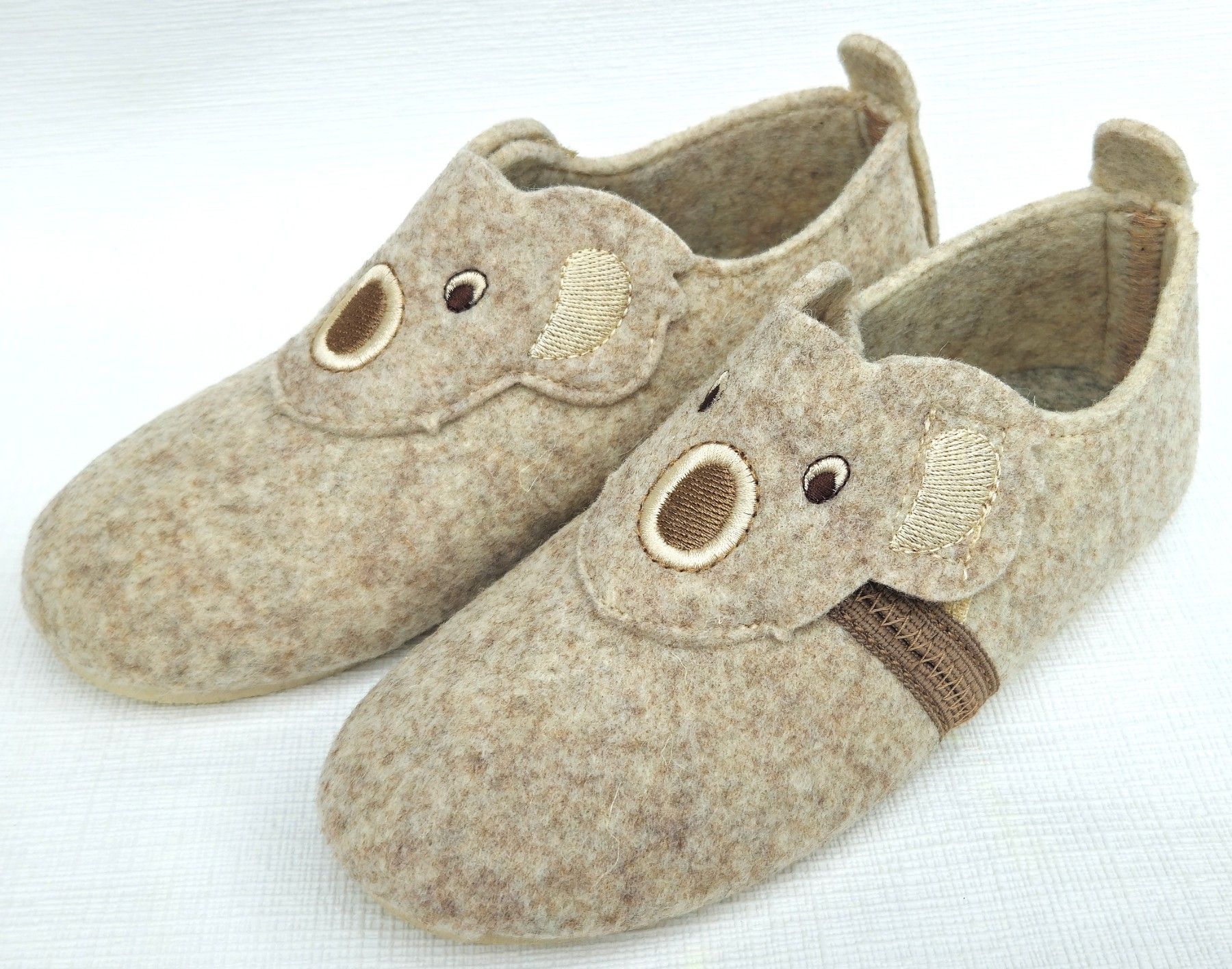 Leichte Kinder Hausschuhe Gr.28 bis 34 - 100% Wolle Filz- KOALA Klettverschluss