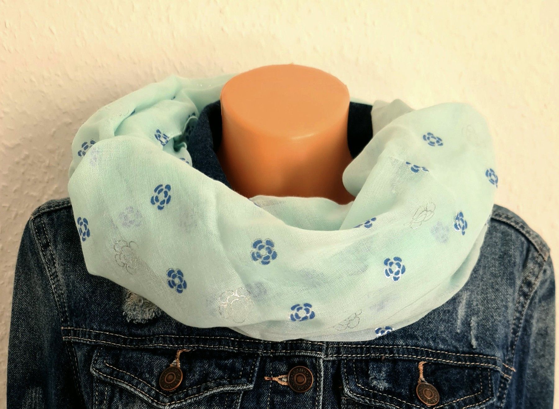 Leichter XXL Schal Loop Schlauchschal Viskose Baumwolle Blüten Metallic Mint