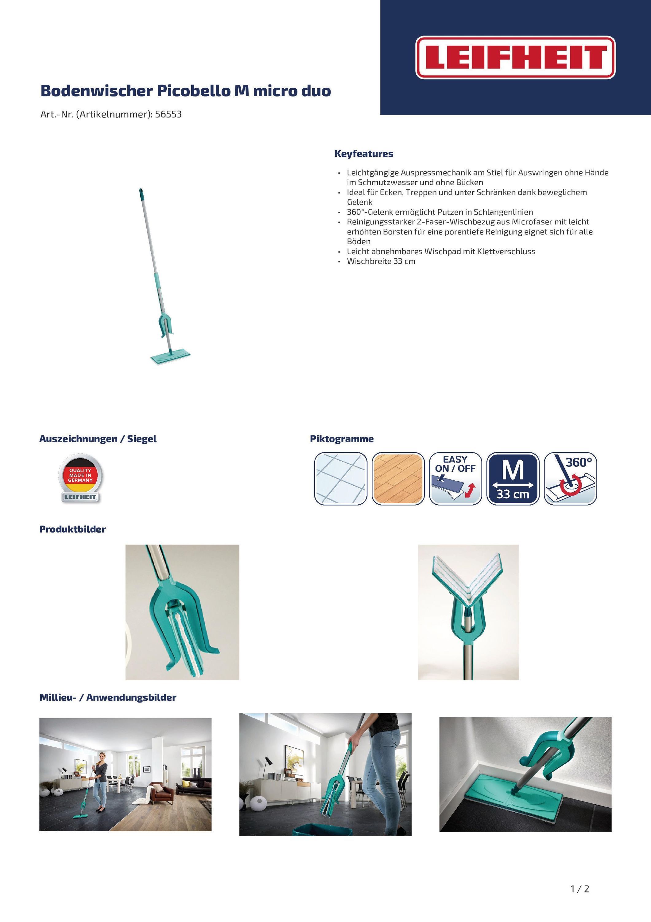 LEIFHEIT Leifheit Bodenwischer Picobello M micro duo