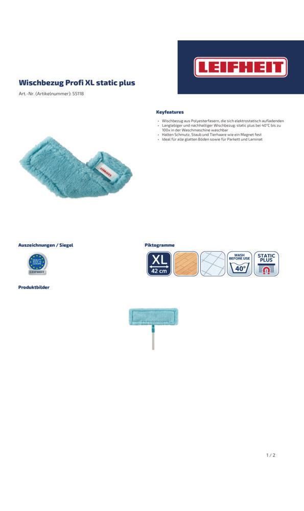 • Leifheit Wischbezug Profi XL static plus Wischbreite 42cm