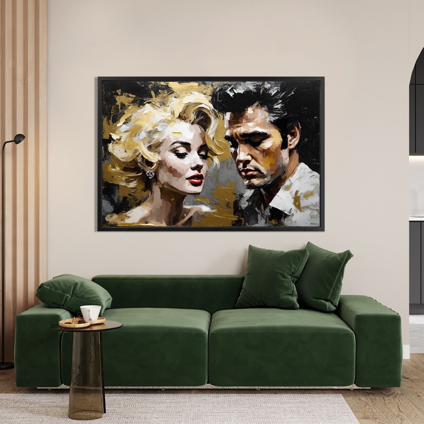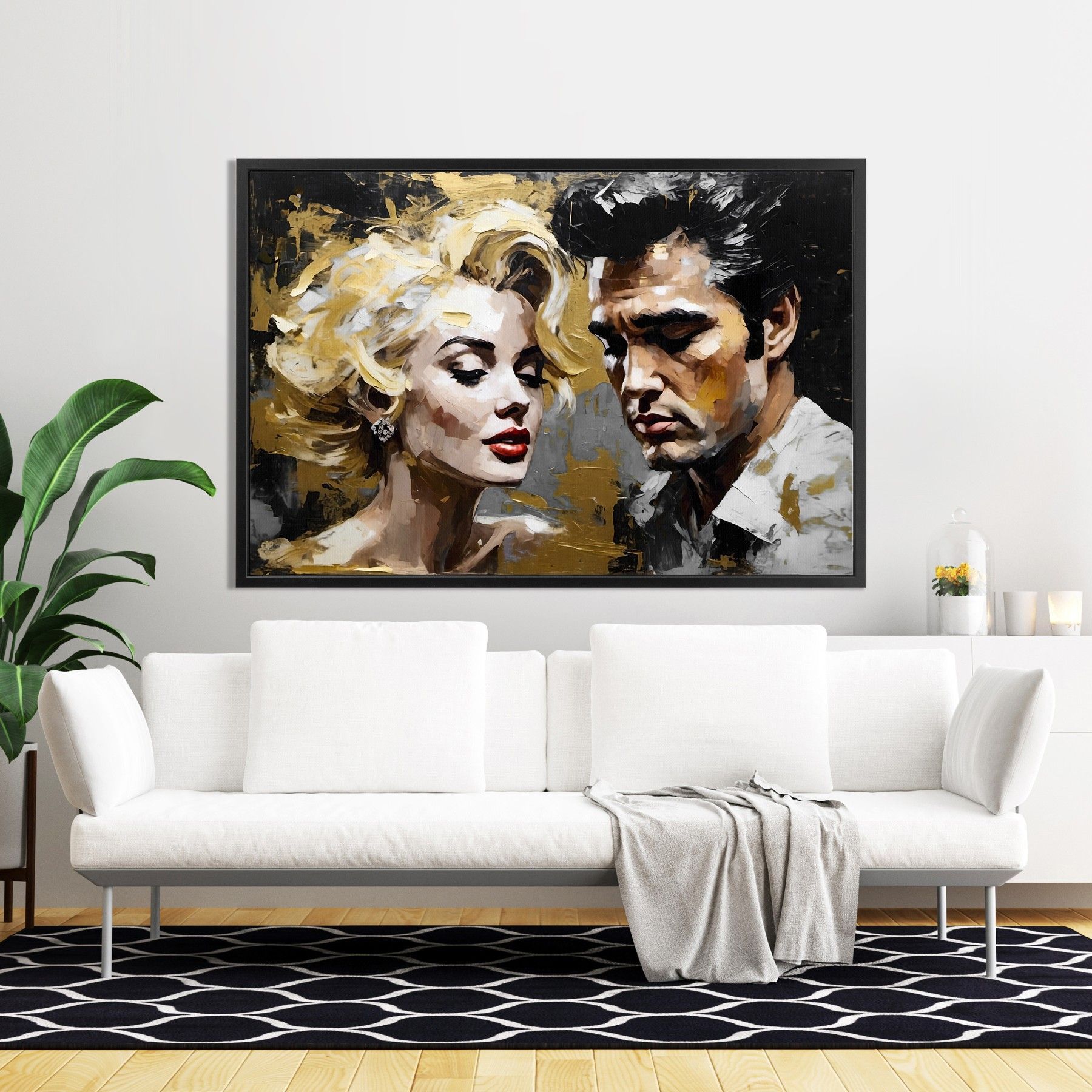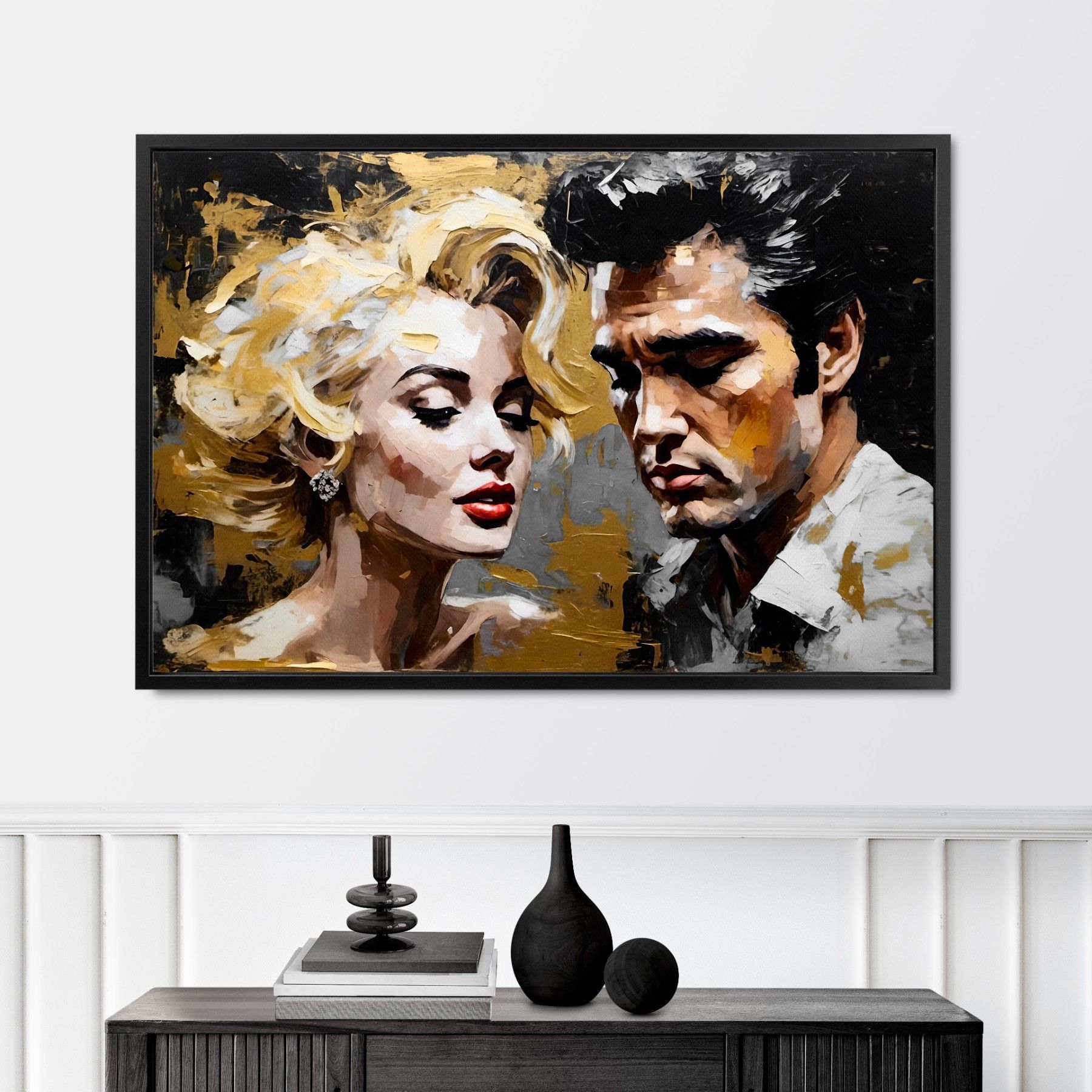 Leinwand-Bild mit Rahmen XXL , Wandbild Elvis Presley and Marilyn Monroe , Home Deko