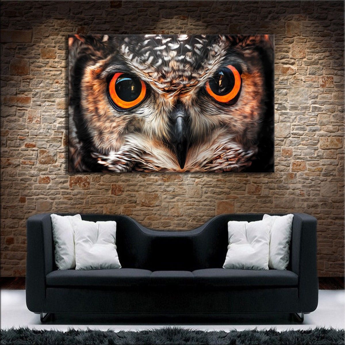 Themen: Eule - Leinwand wird mit Hand auf einen Holz Keilrahmen aufgespannt und rEurockseitig getackert. ink. Bilderhaken und Keile. Leinwand Stoff 240 g qm mit glEuronzende OberflEuroche. Bild haben echt wunderbare Aussicht mit brillanten FarbqualitEurot fEuror Ihre Wohnung e.v. Schlafzimmer, Wohnz