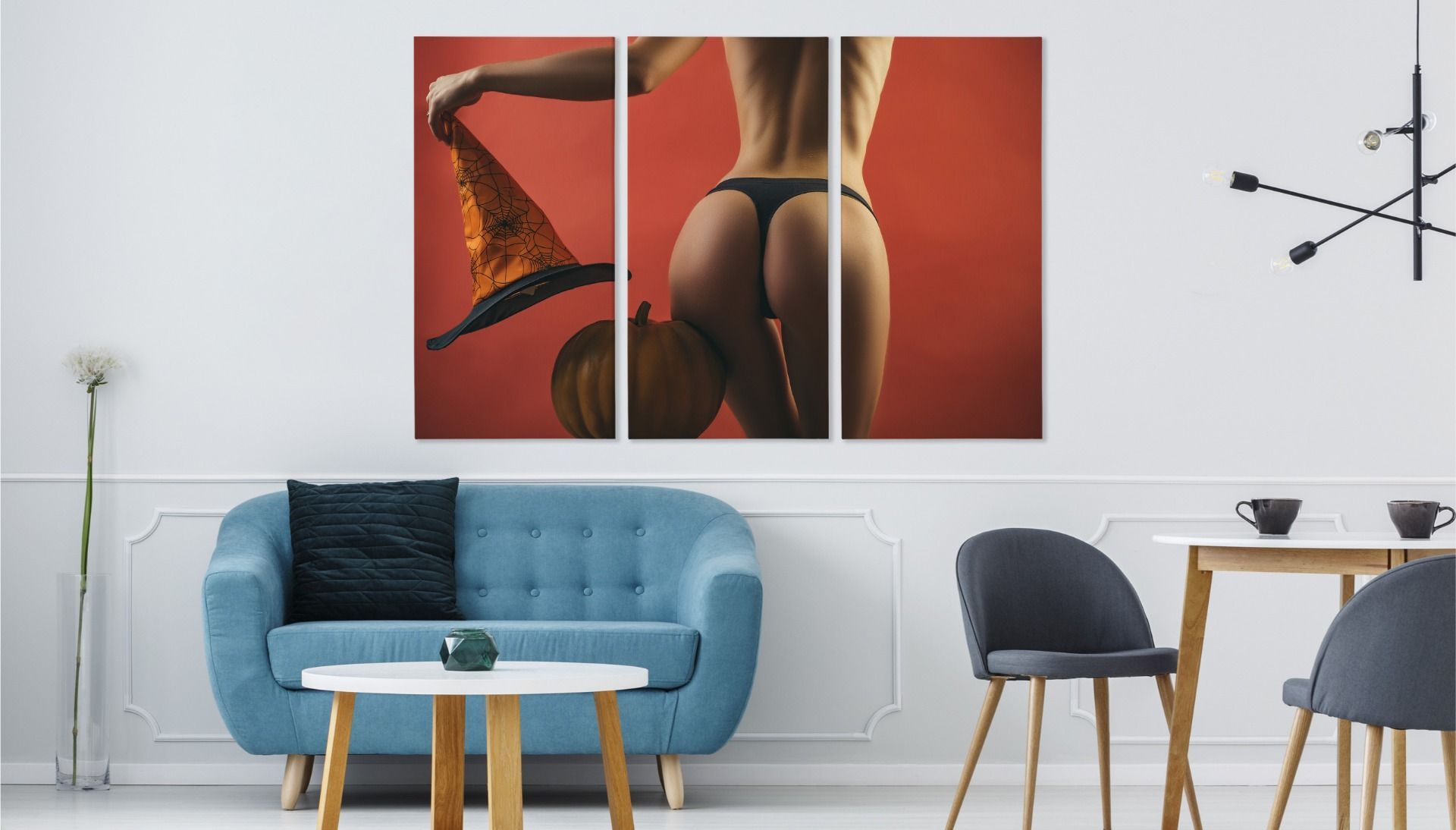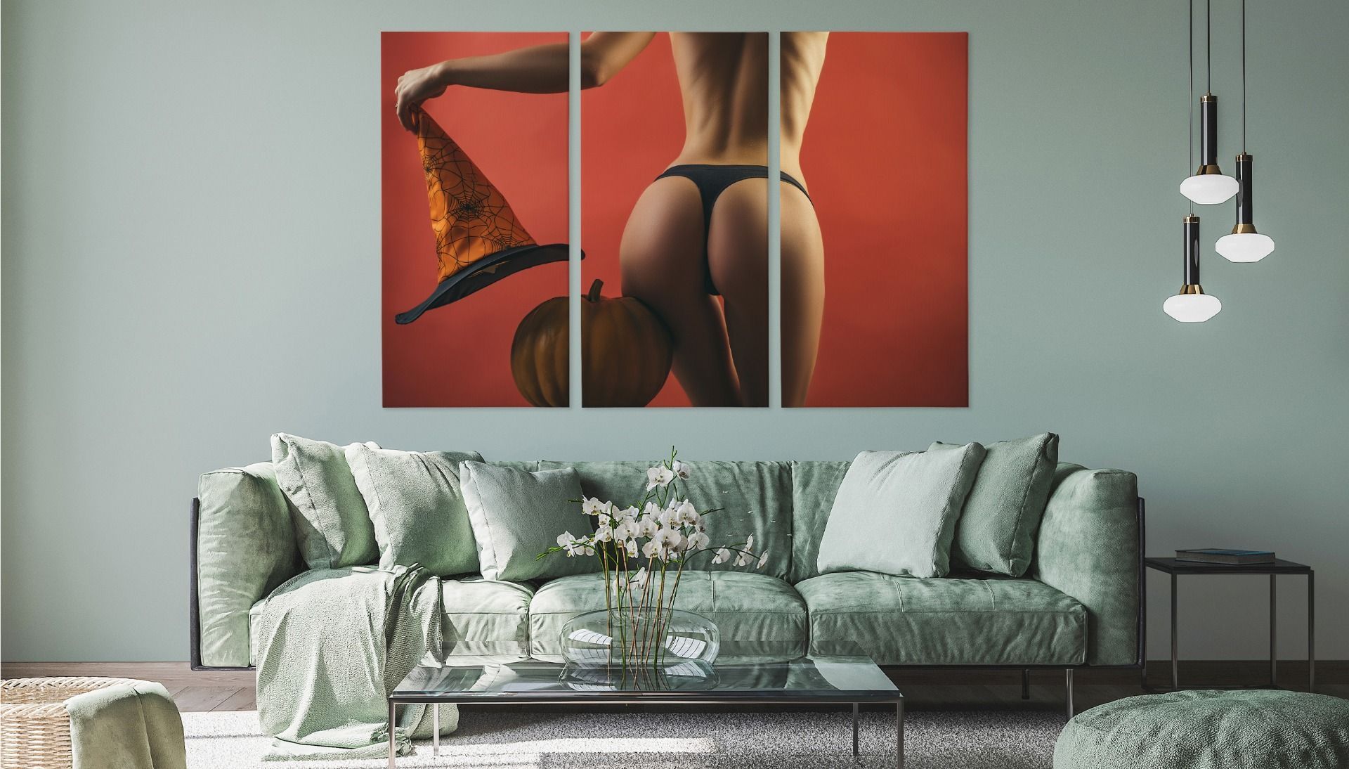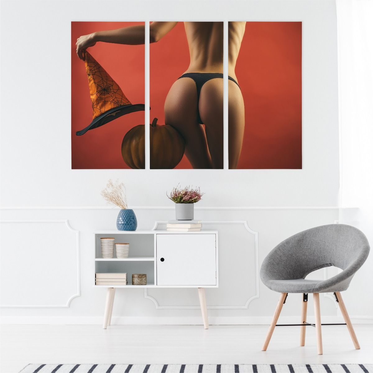Leinwand Bilder SET 3-Teilig Halloween FRAU 3D Akt Wandbilder xxl 5572