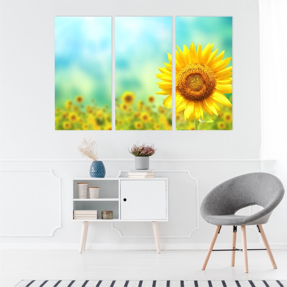 Leinwand Bilder SET 3-Teilig Natur 3D Sonnenblume BLUMEN Wandbilder xxl 4319
