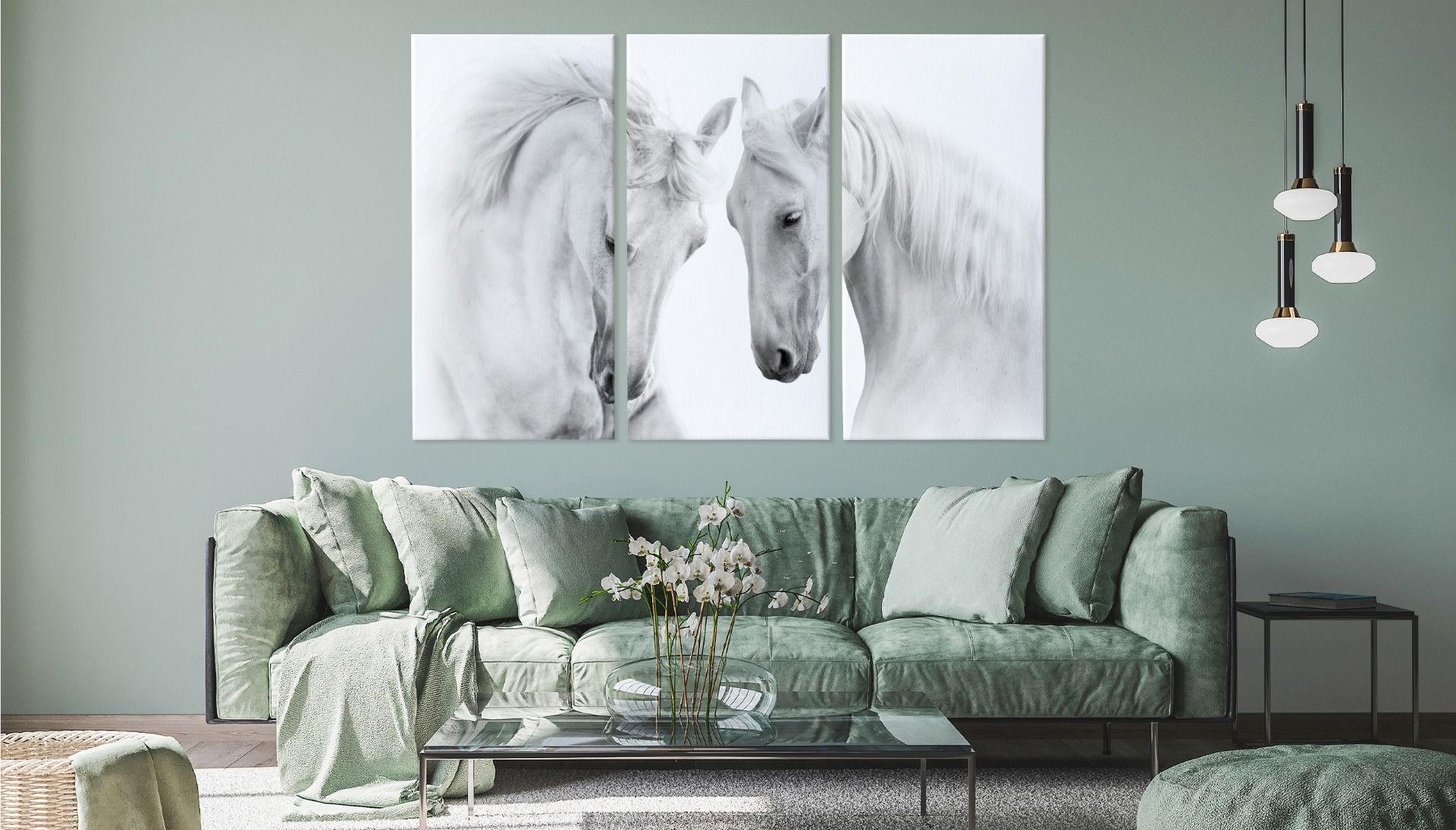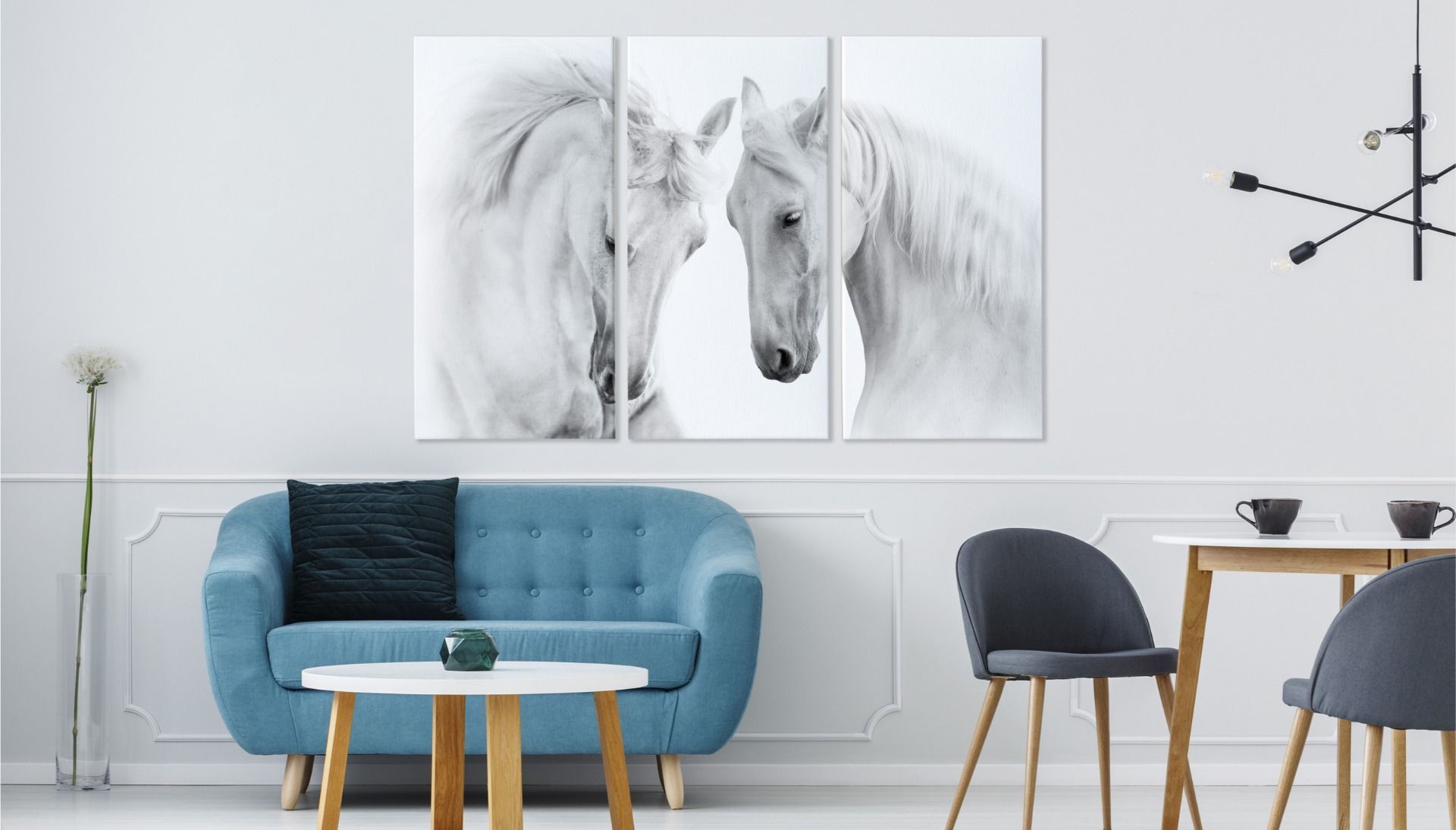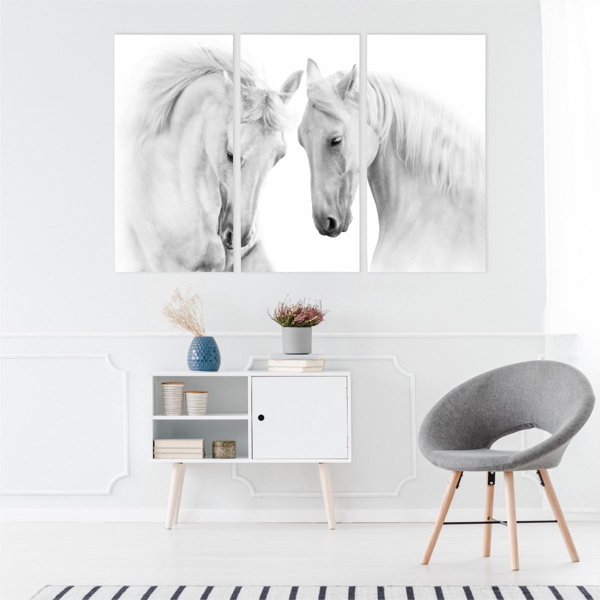 Leinwand Bilder SET 3-Teilig Wei§e PFERDE Naturtiere Wandbilder xxl 4733