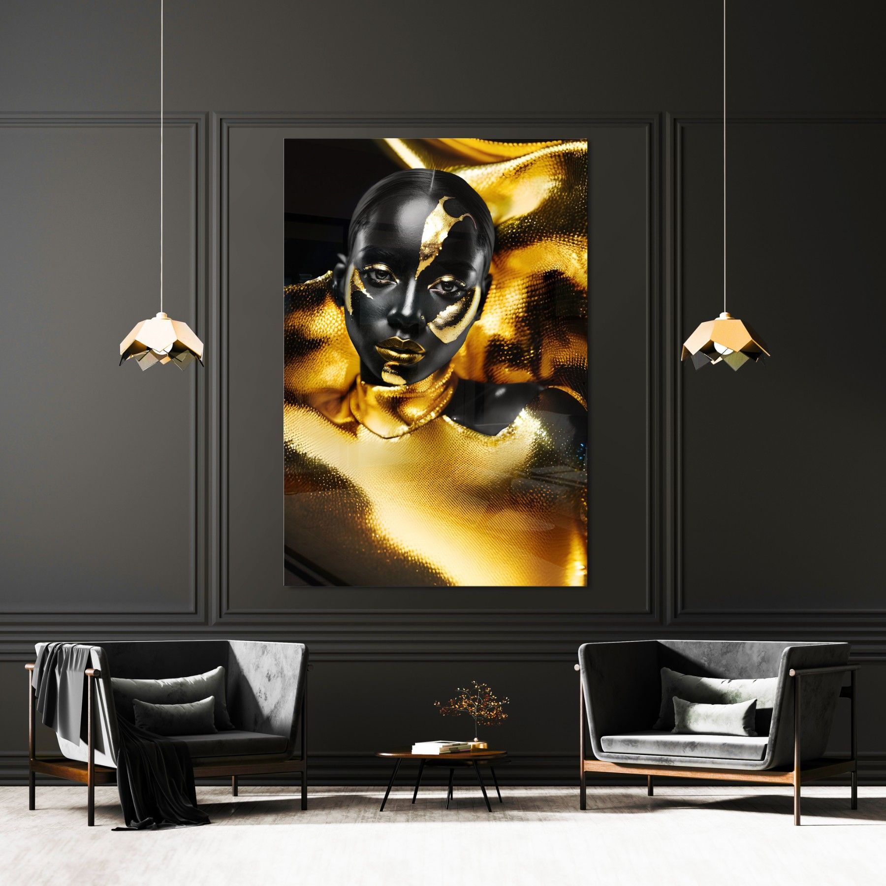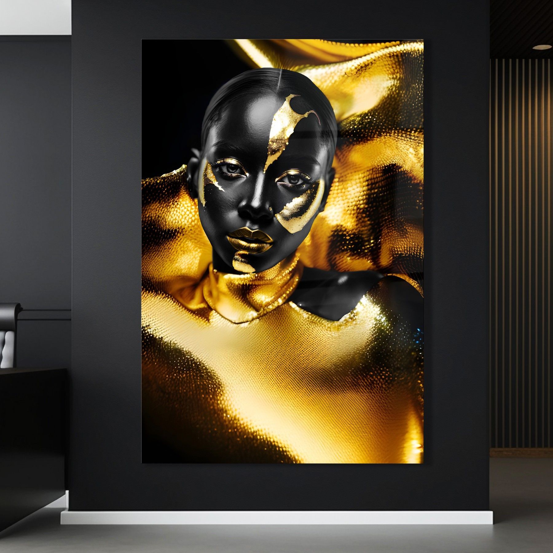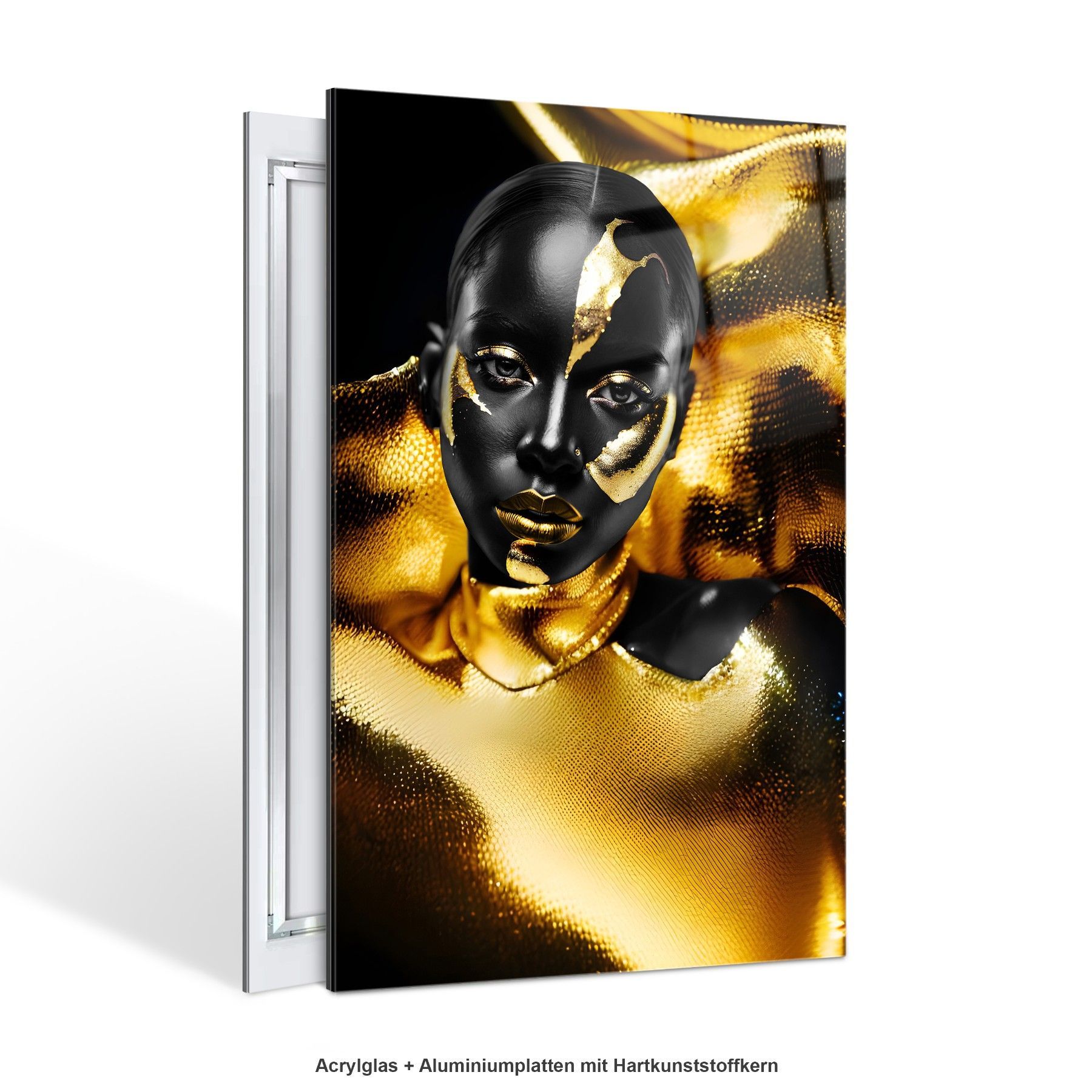 Leinwand Wandbild Luxury Black Gold Woman , Fashion , Acrylglas + Aluminium, Poster