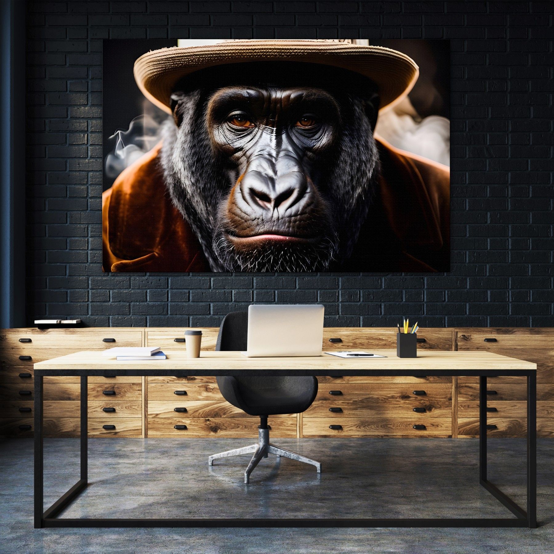 Leinwandbild Affen Gorilla Mafia Abstrakt Tier Acrylglas + Aluminium, Poster Wandbild