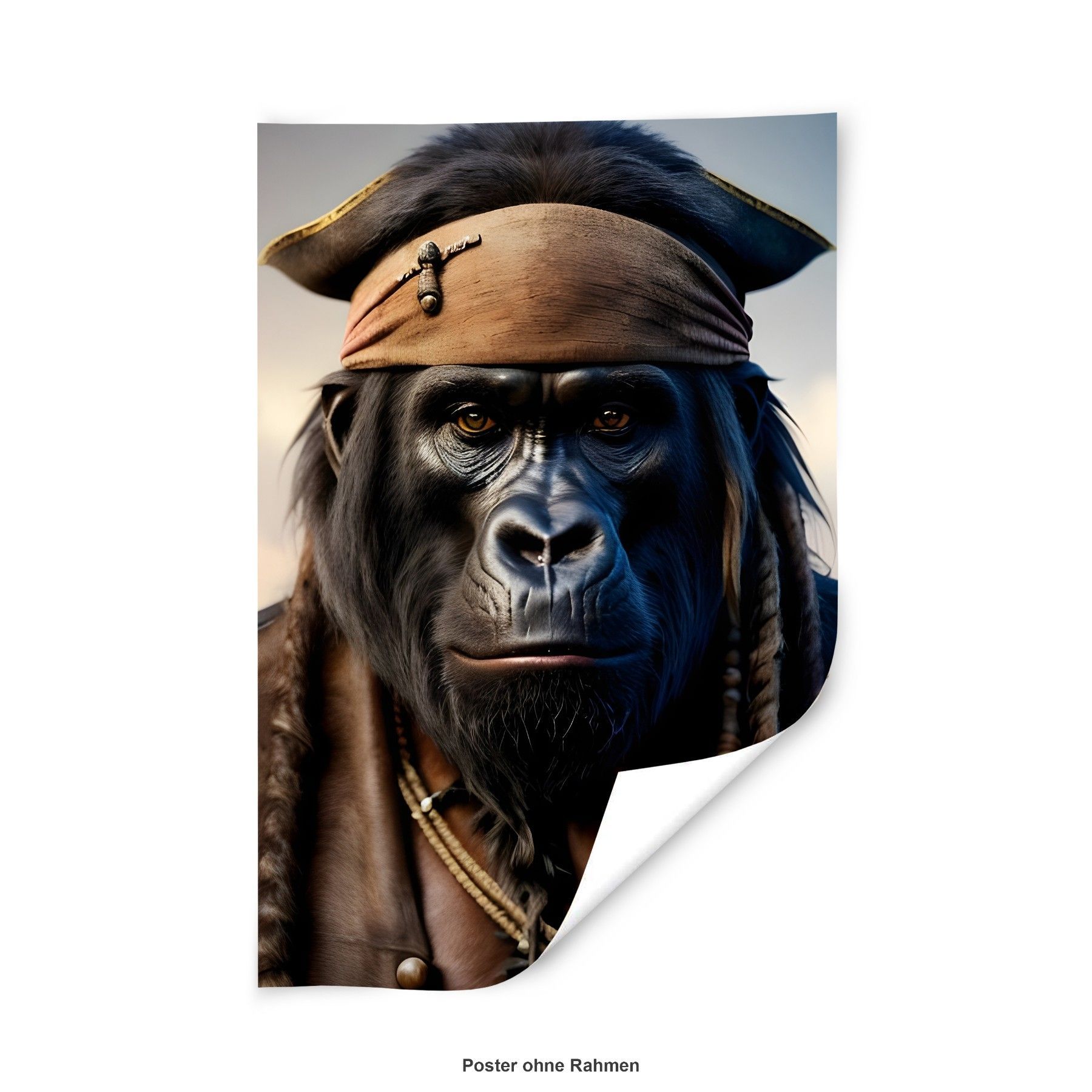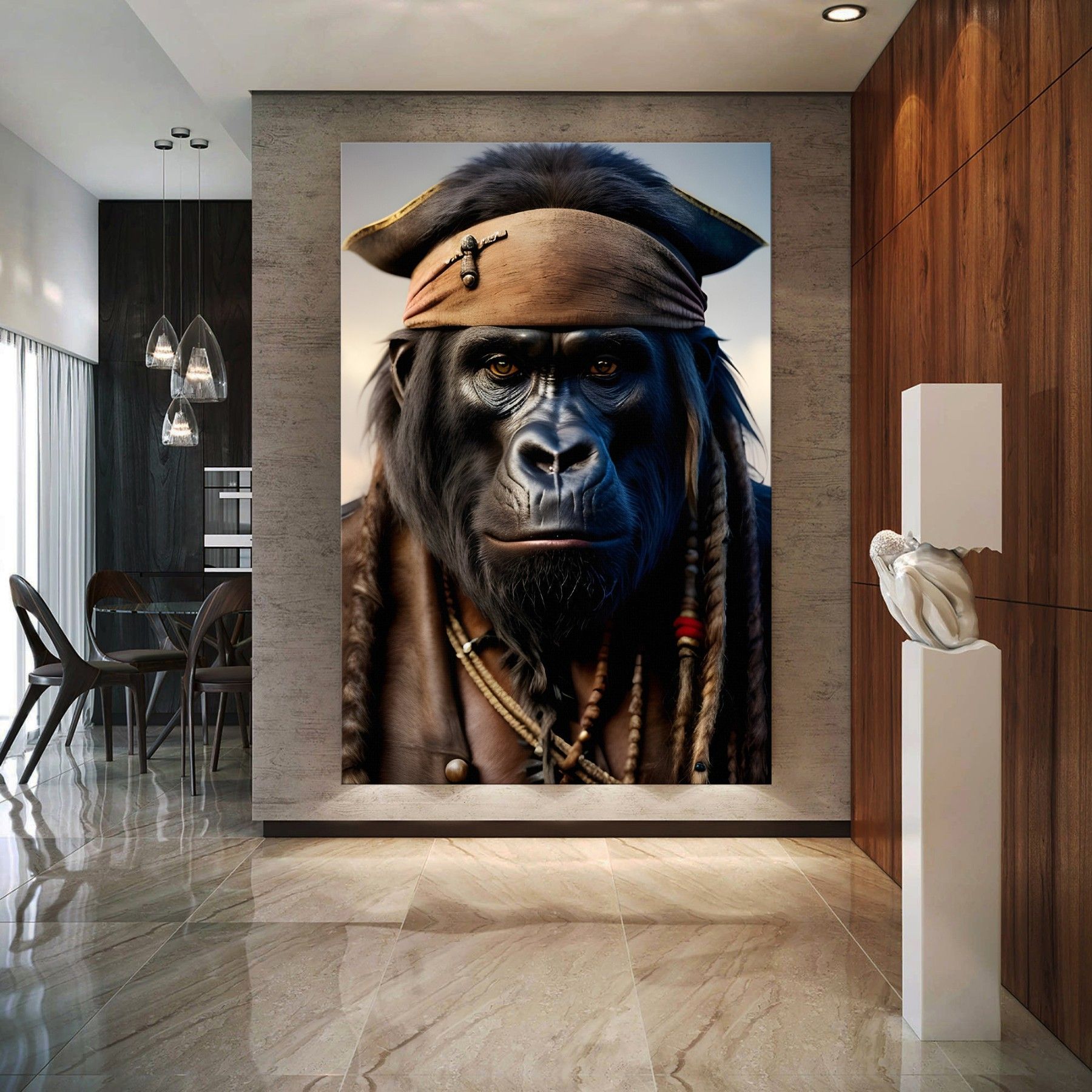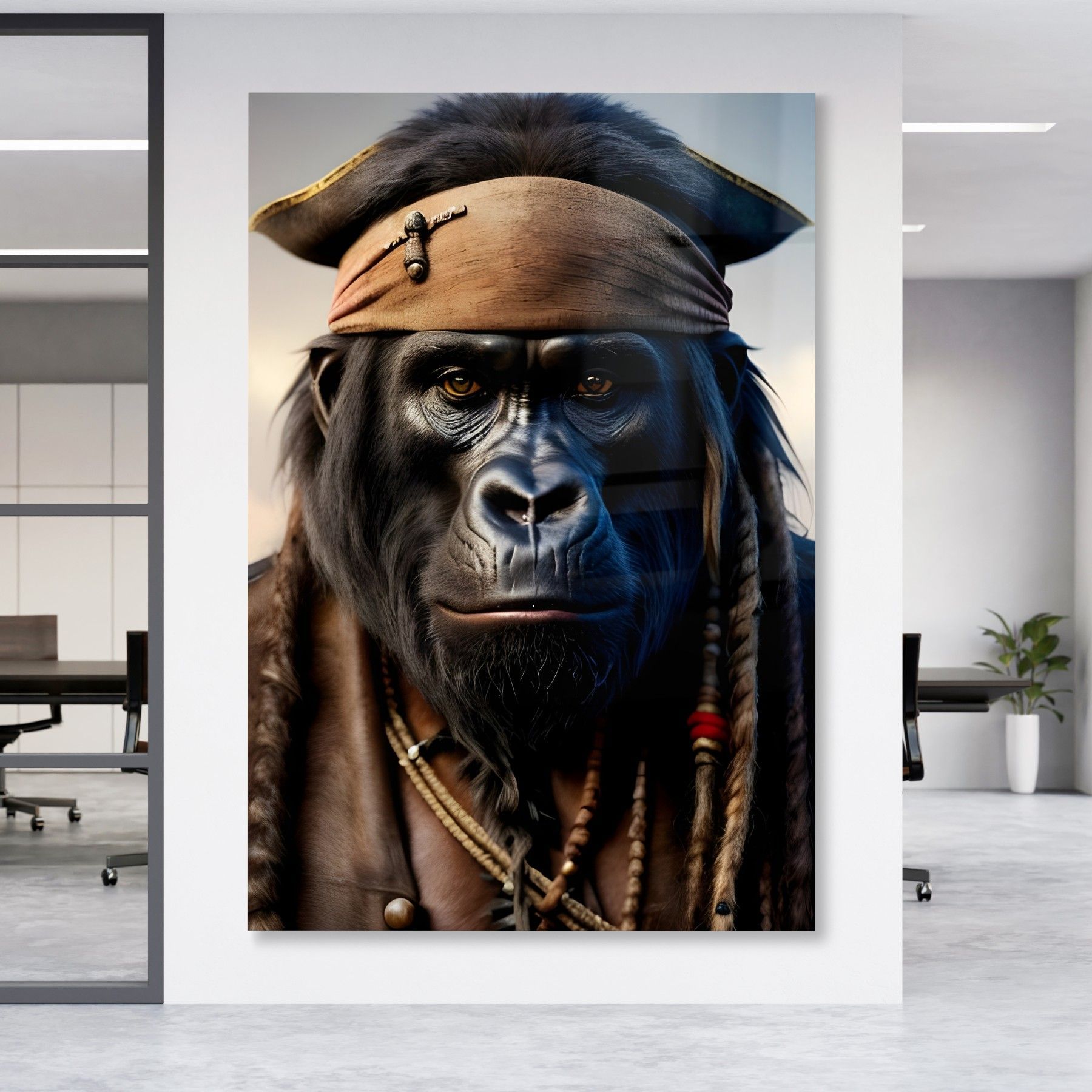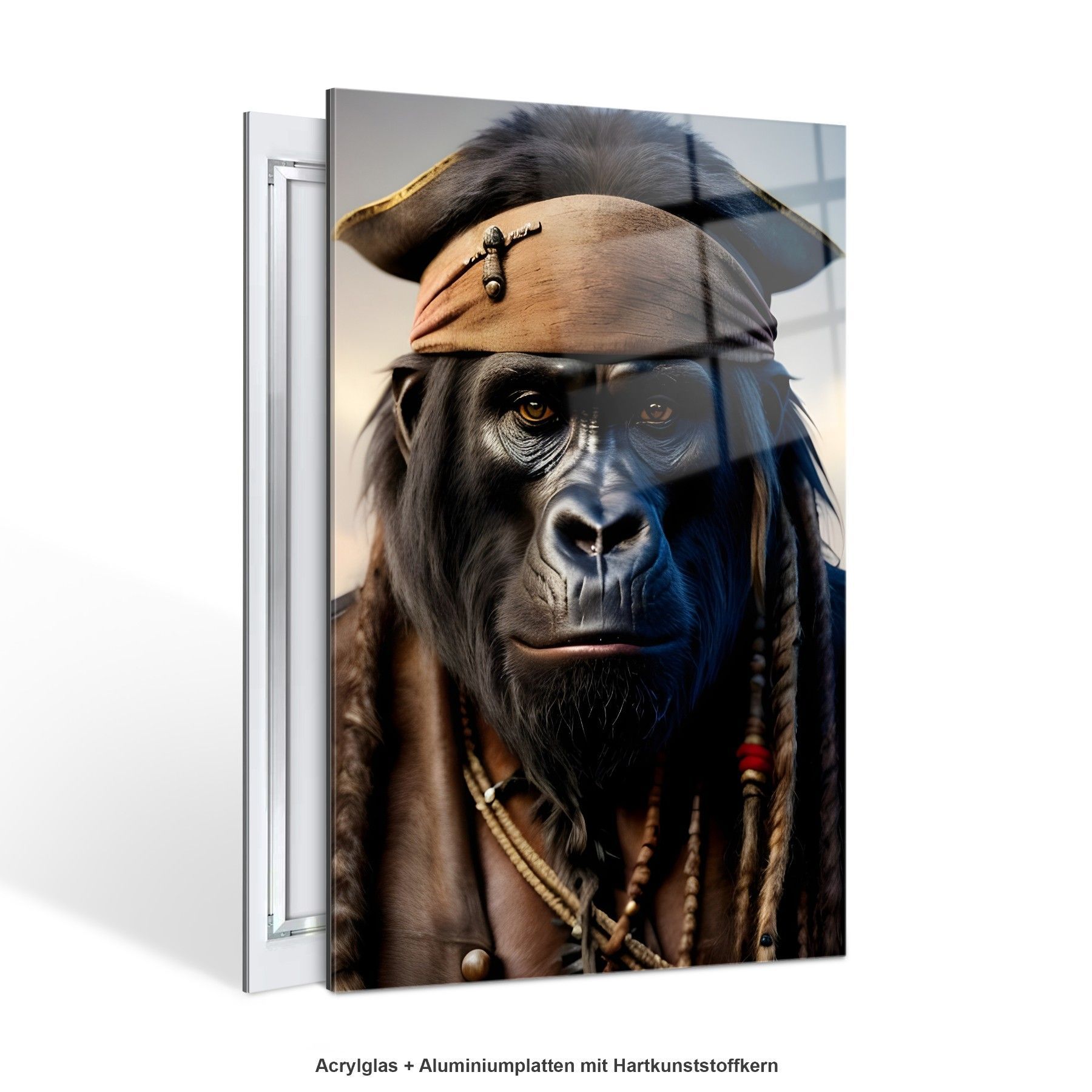 Leinwandbild Gorilla Affen Pirate Tier Poster , Acrylglas + Aluminium Wandbild