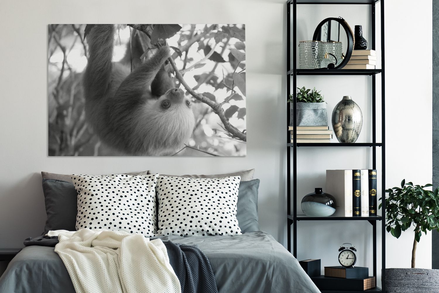 Leinwandbilder - 120x80 cm - Baby-Faultier im Regenwald von Costa Rica in schwarz und