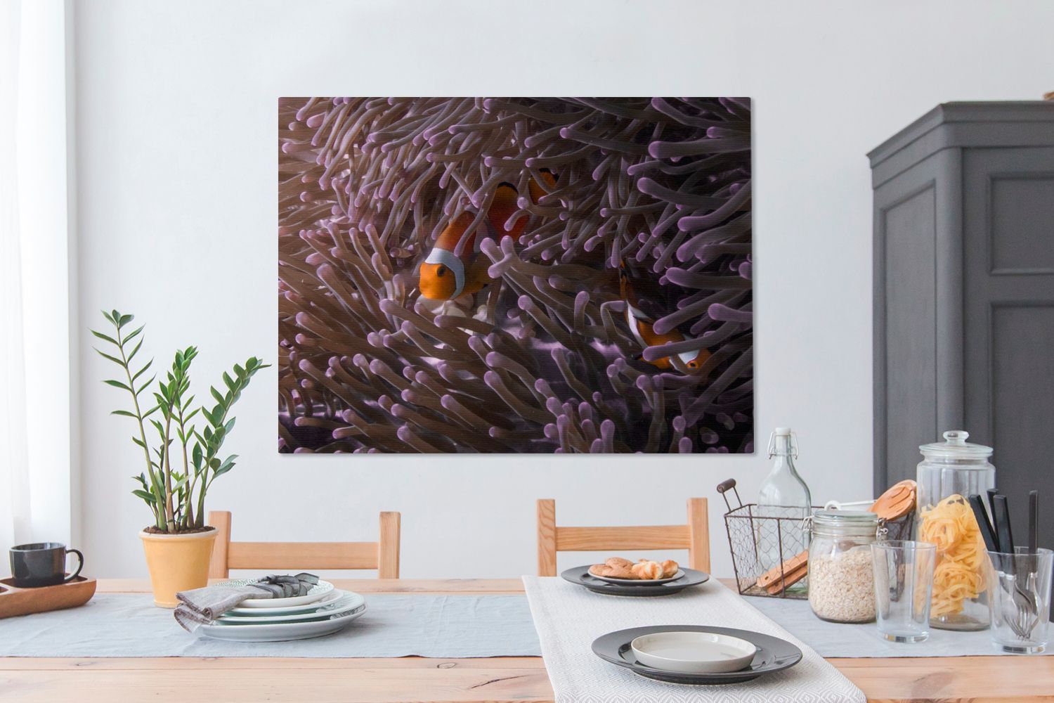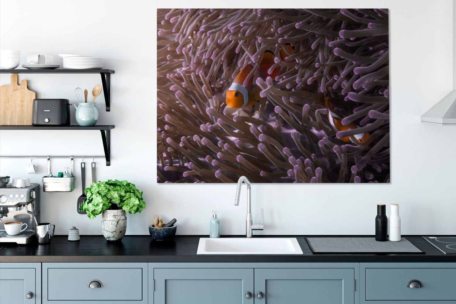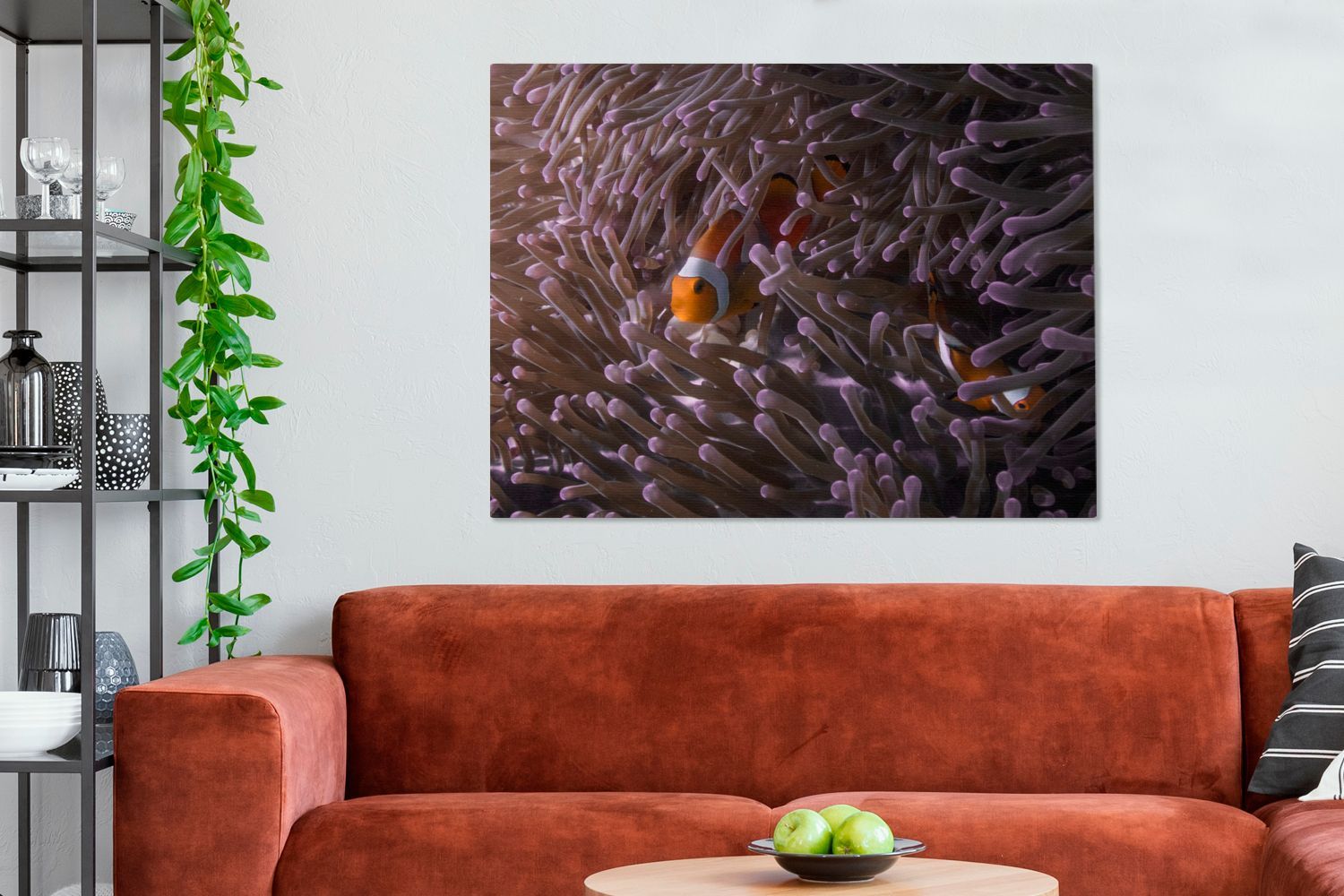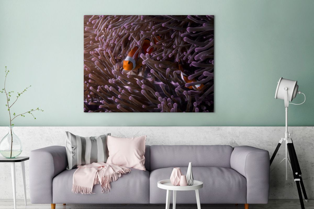 Leinwandbilder - 120x90 cm - Clownfisch versteckt zwischen den Seeanemonen