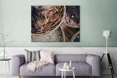 • Leinwandbilder - 90x120 cm - Gewürze auf Holzsockel (Gr. 90x120 cm)