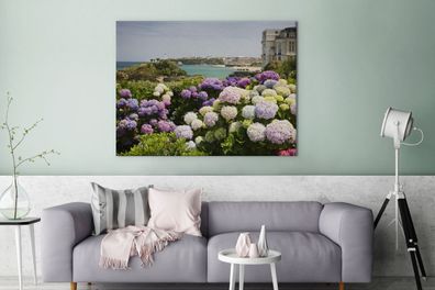 • Leinwandbilder - 120x90 cm - Hortensien am Meer (Gr. 120x90 cm)