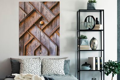 • Leinwandbilder - 90x120 cm - Holztür mit einer Eisenstruktur (Gr. 90x120 cm)
