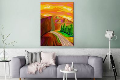 • Leinwandbilder - 90x120 cm - Berglandschaft auf einem Ölgemälde (Gr. 90x120 cm)