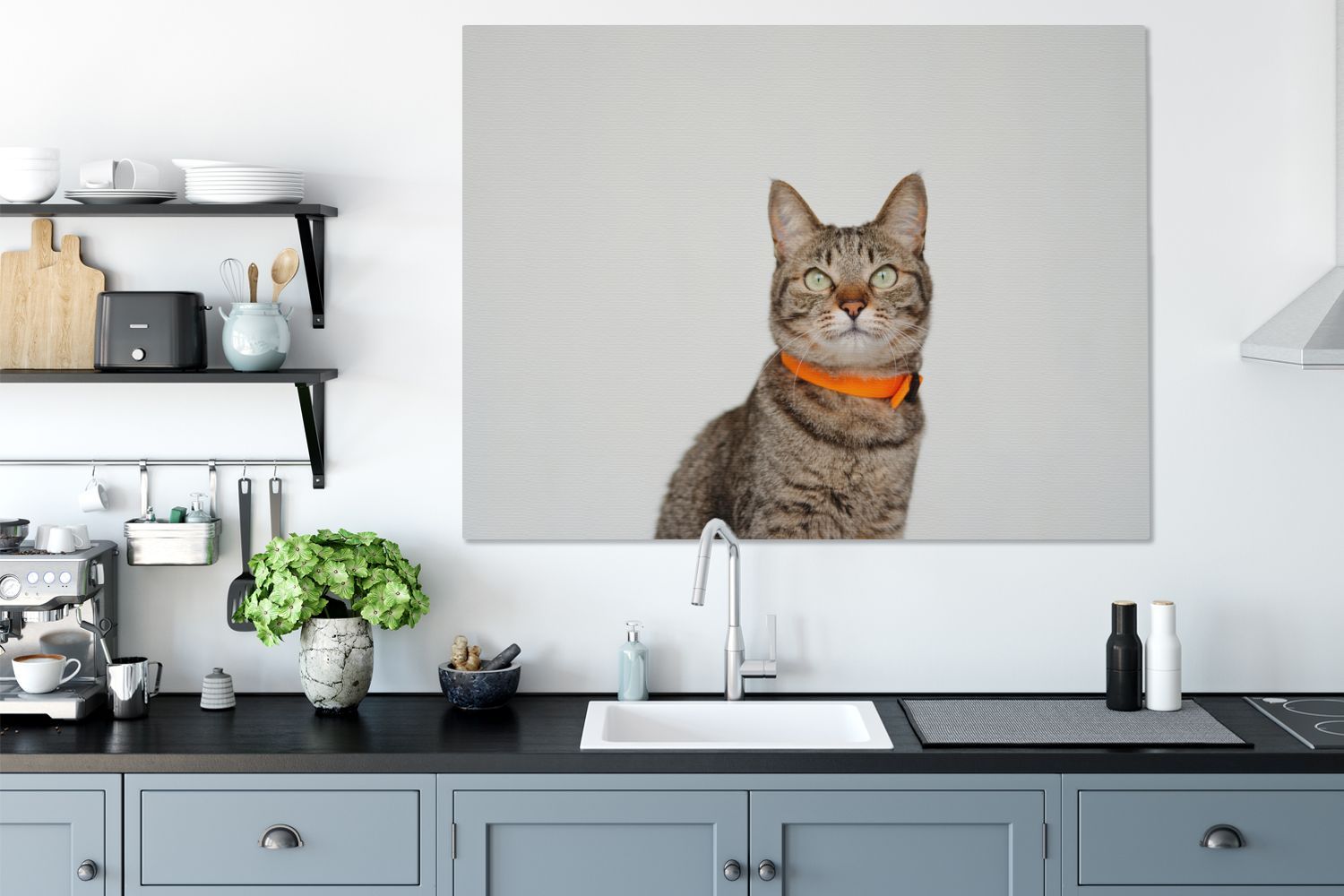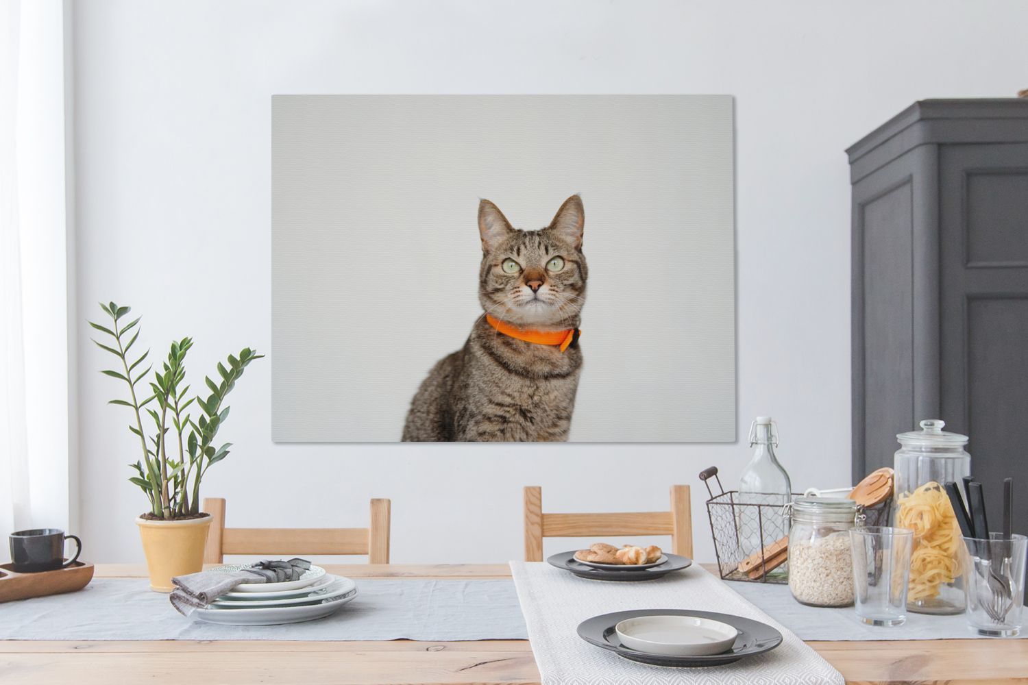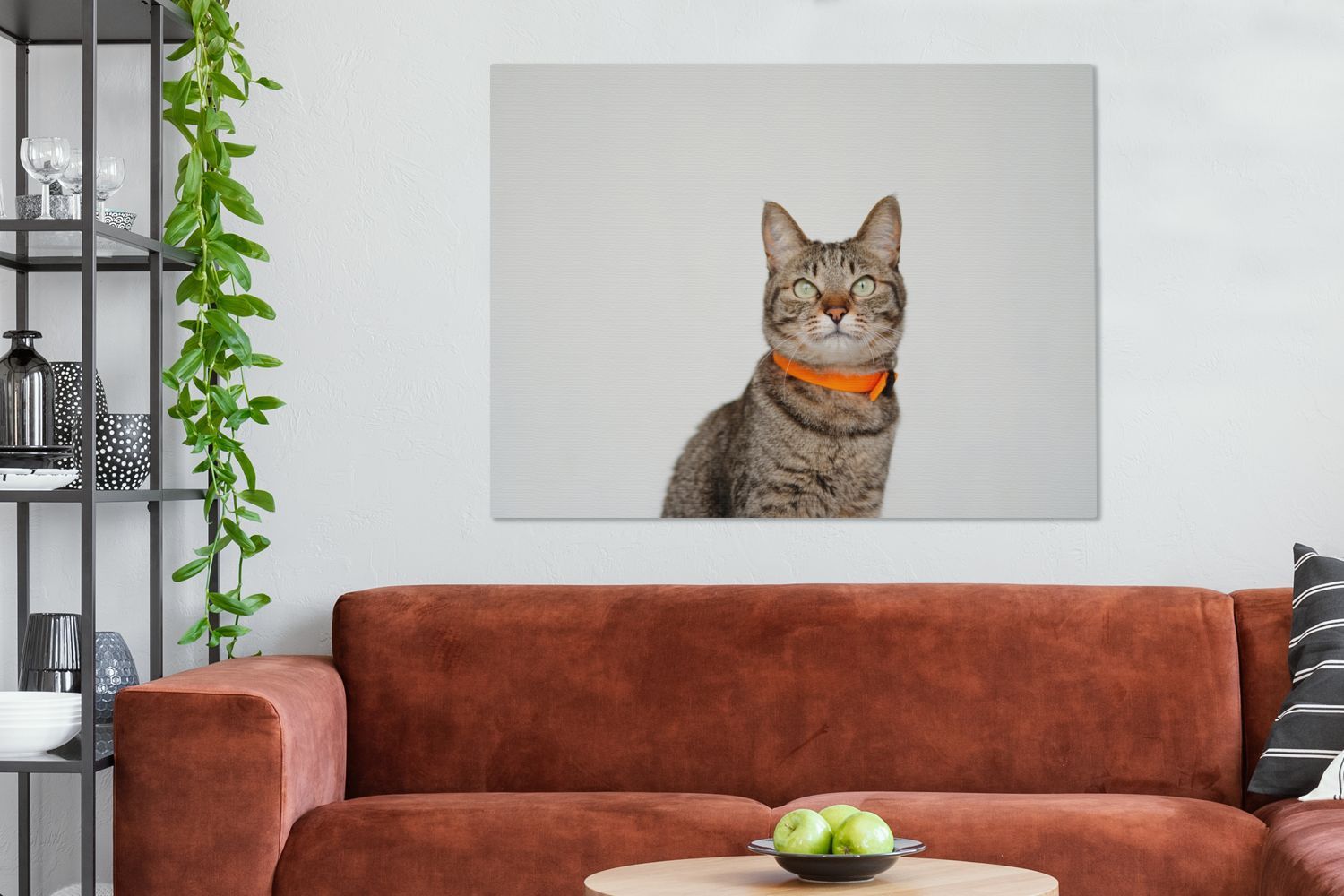 Leinwandbilder - 120x90 cm - Katze - Halsband - Orange (Gr. 120x90 cm)