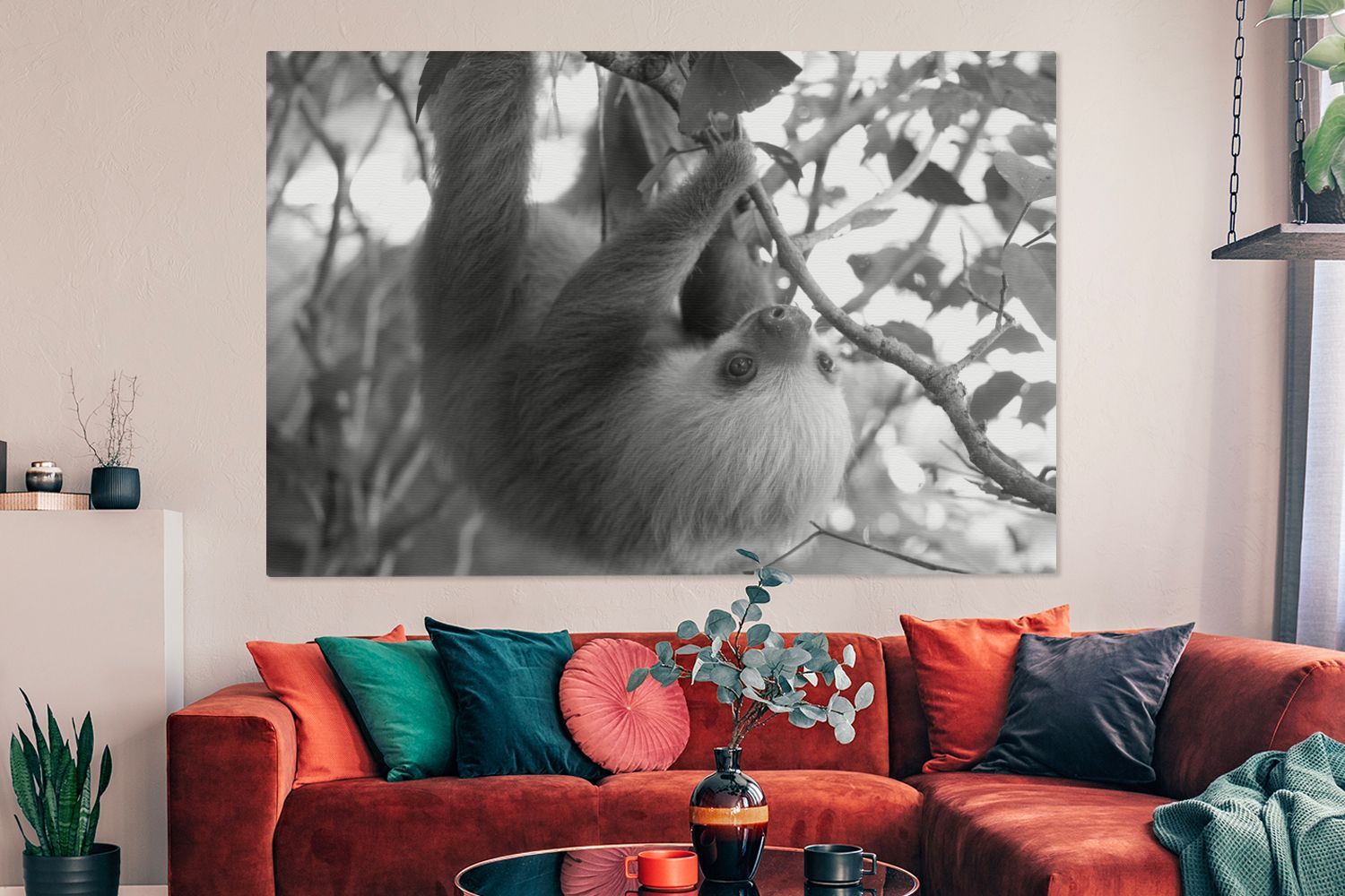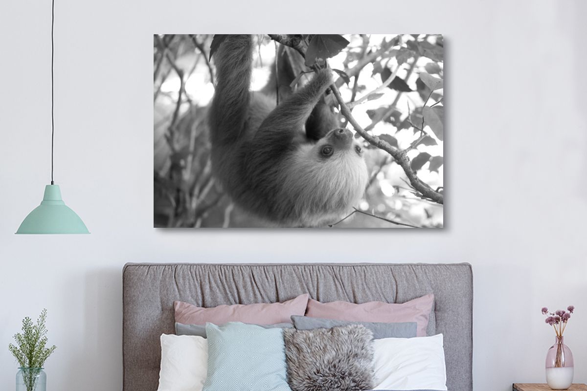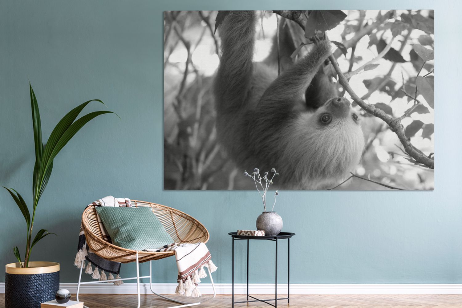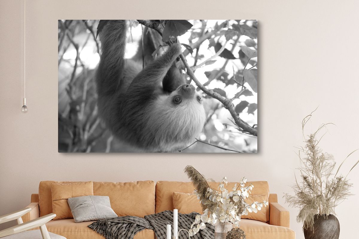 Leinwandbilder - 150x100 cm - Baby-Faultier im Regenwald von Costa Rica in schwarz un