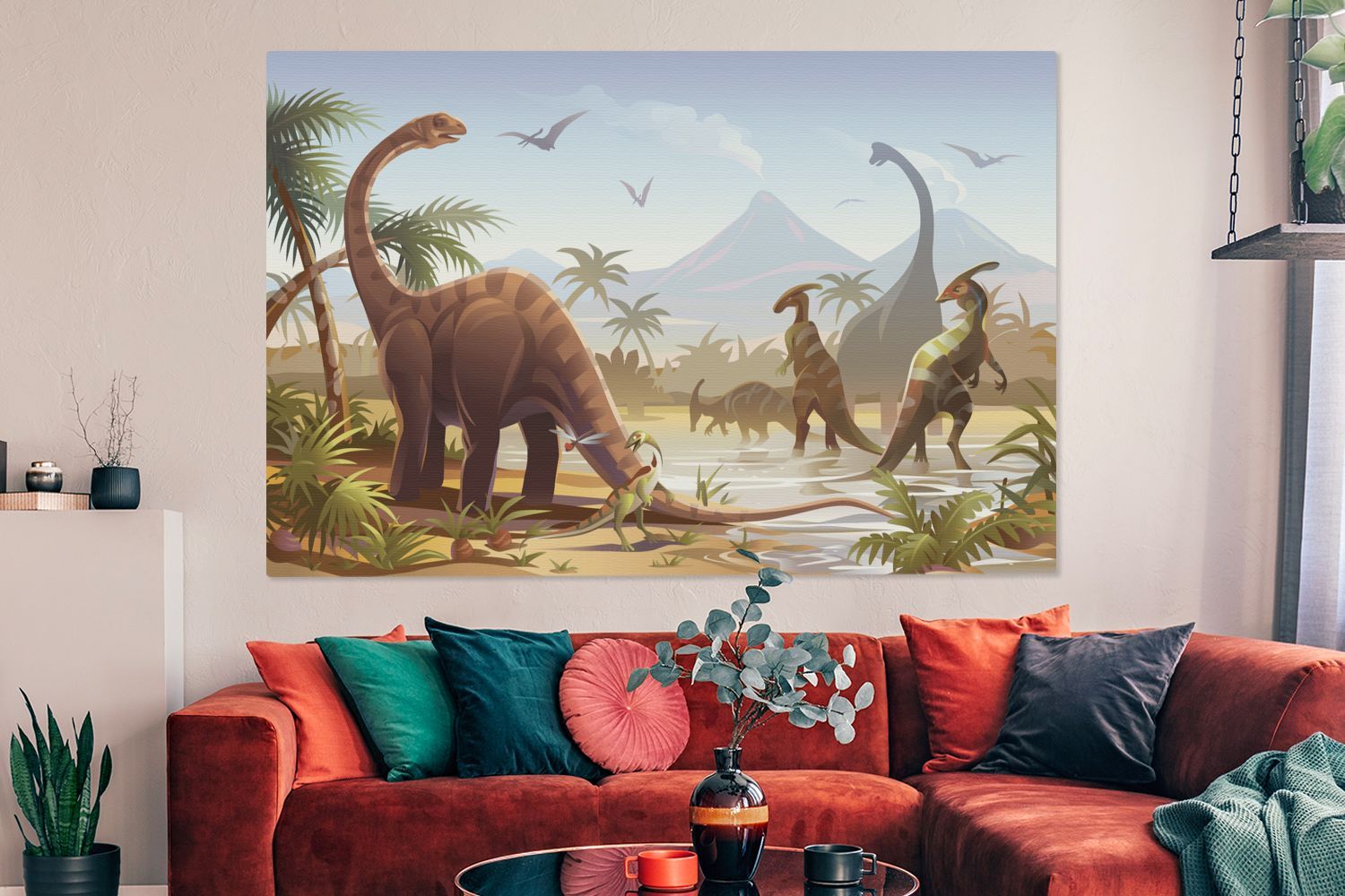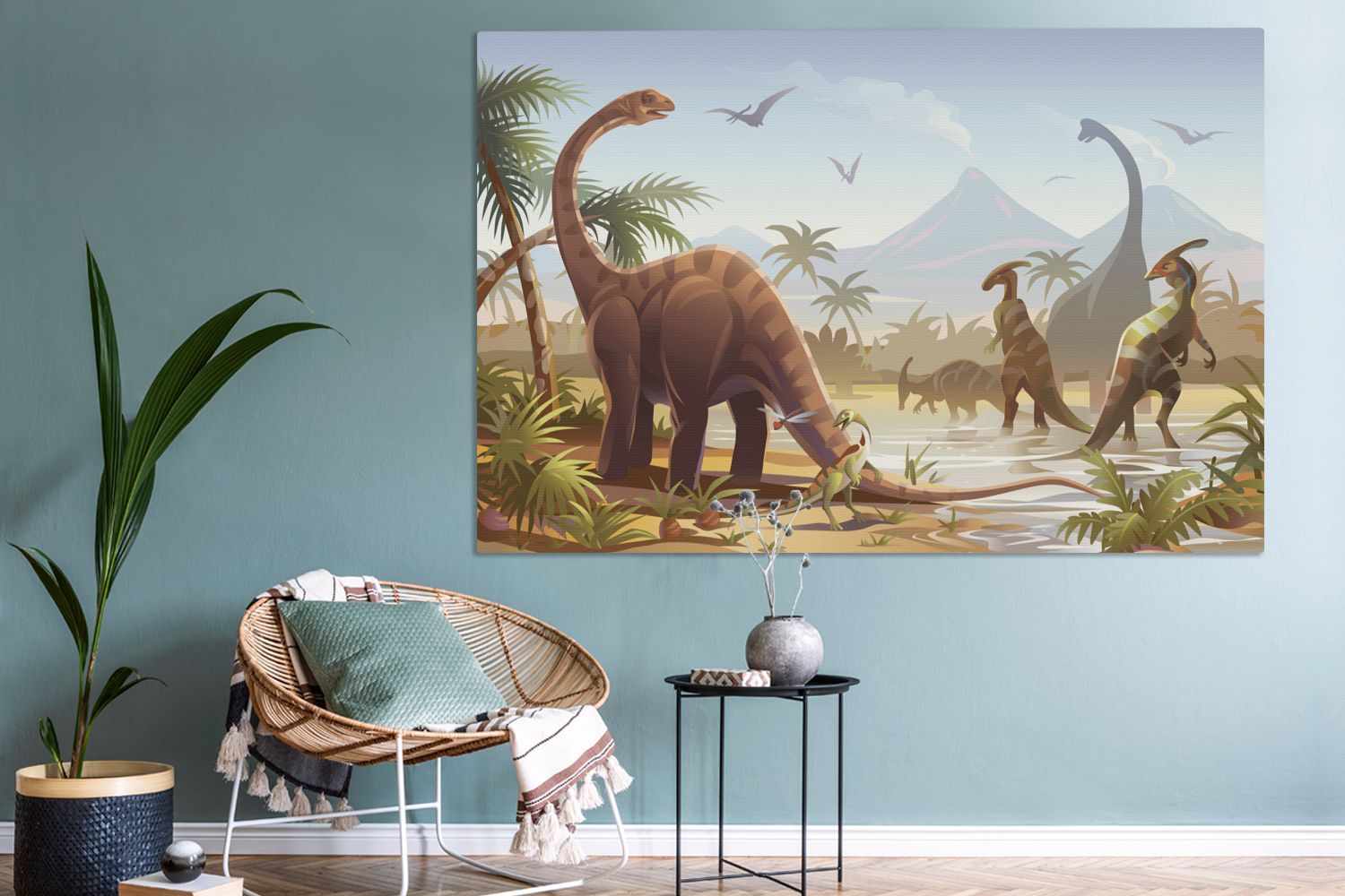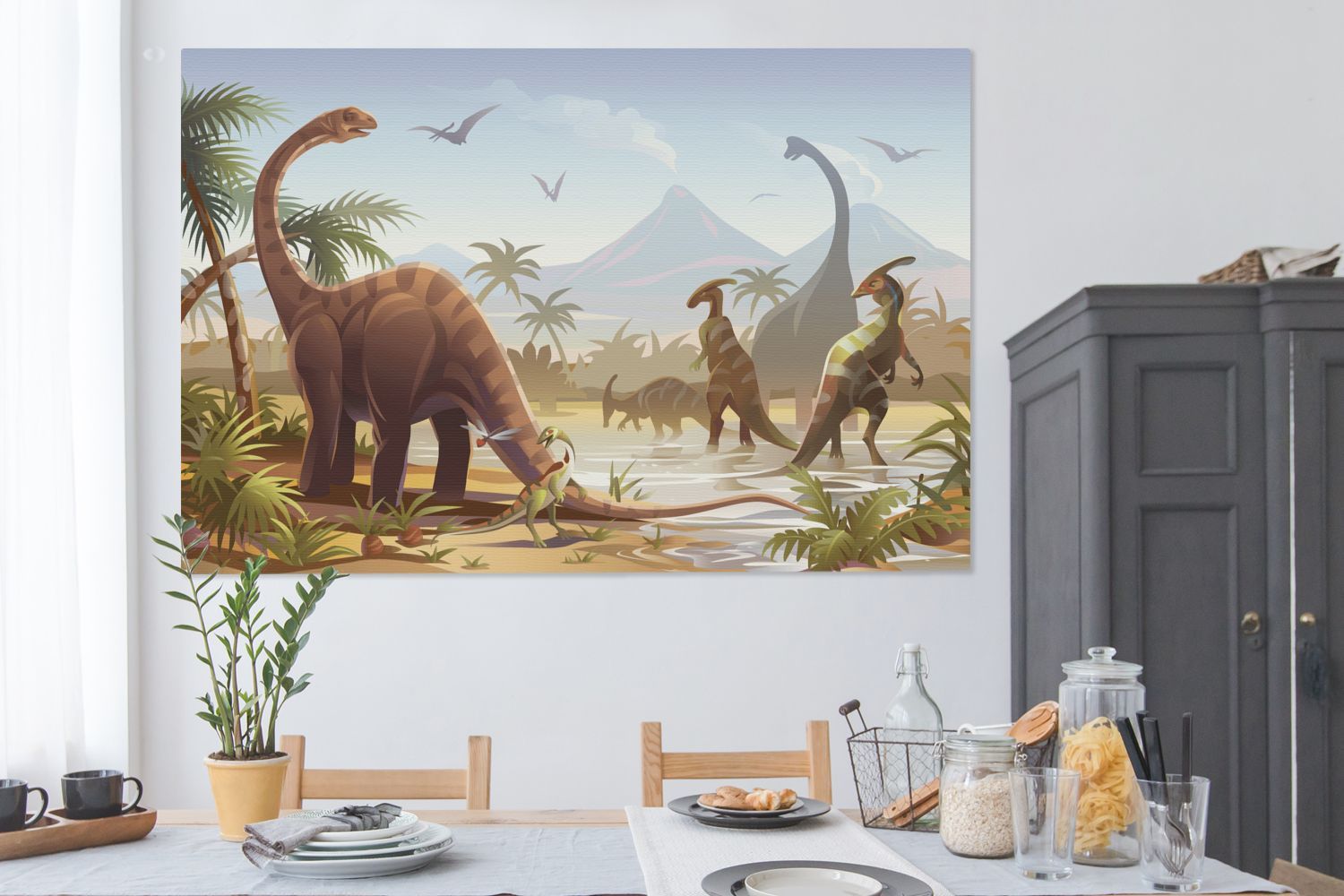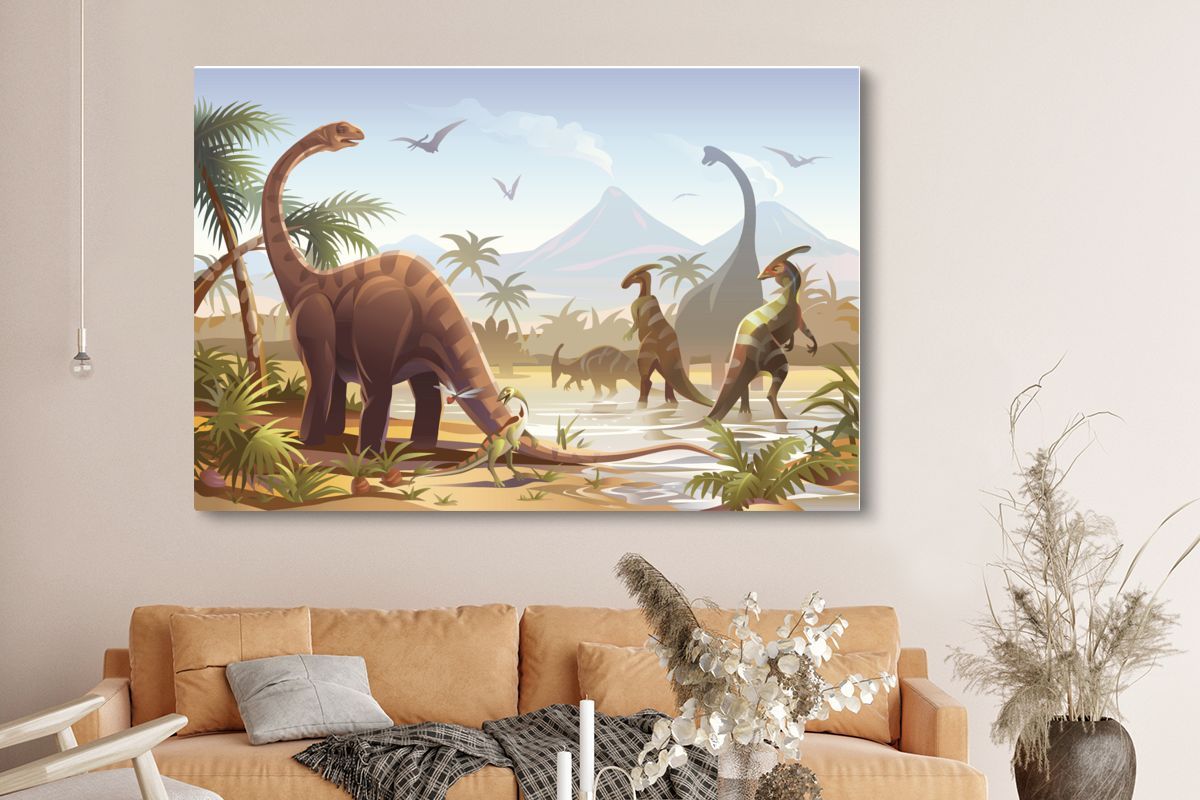 Leinwandbilder - 150x100 cm - Dinosaurier - Landschaft - Tropisch (Gr. 150x100 cm)