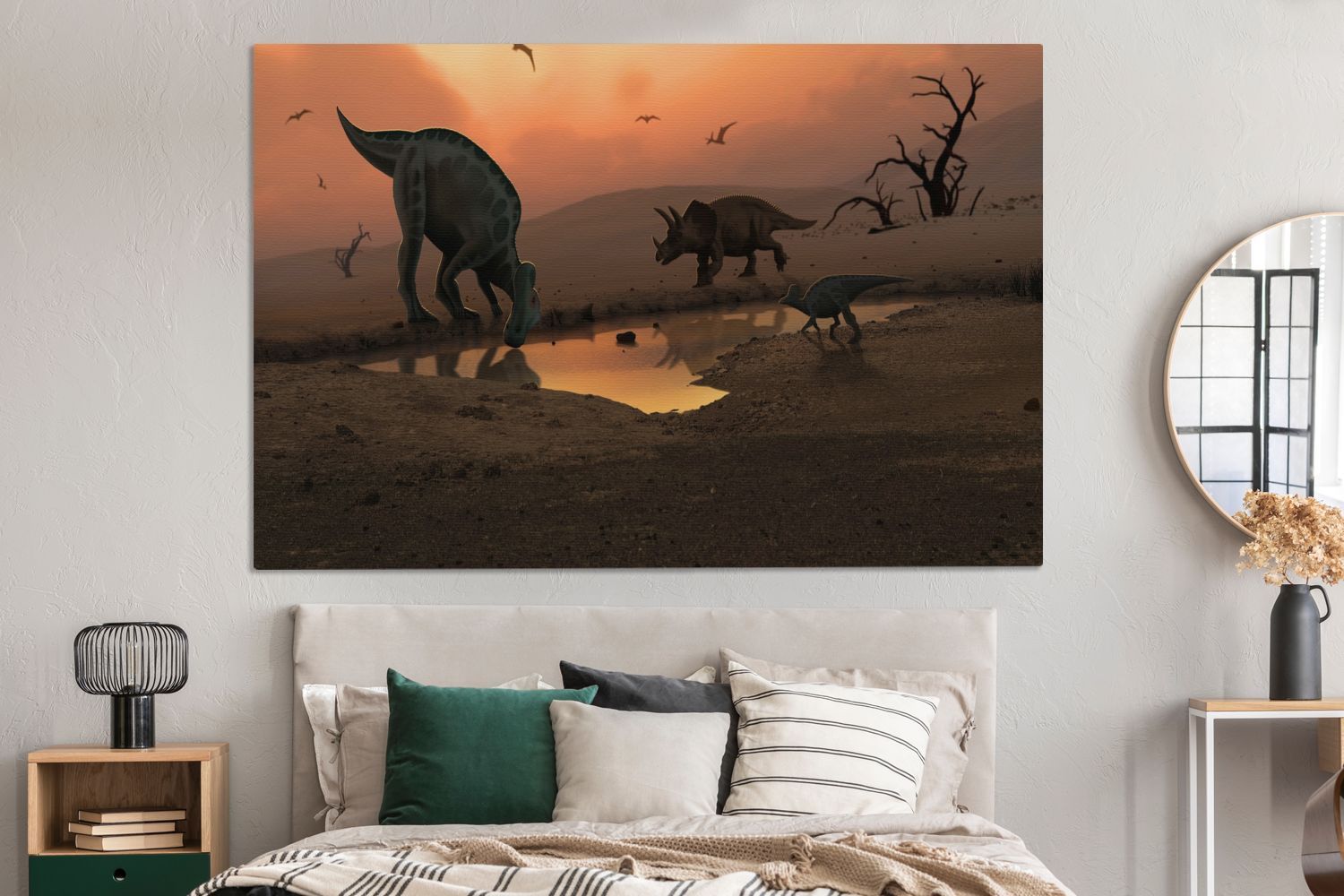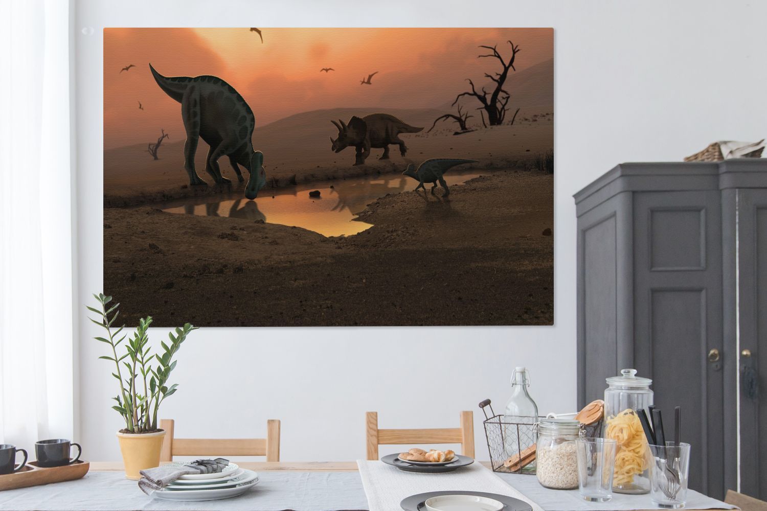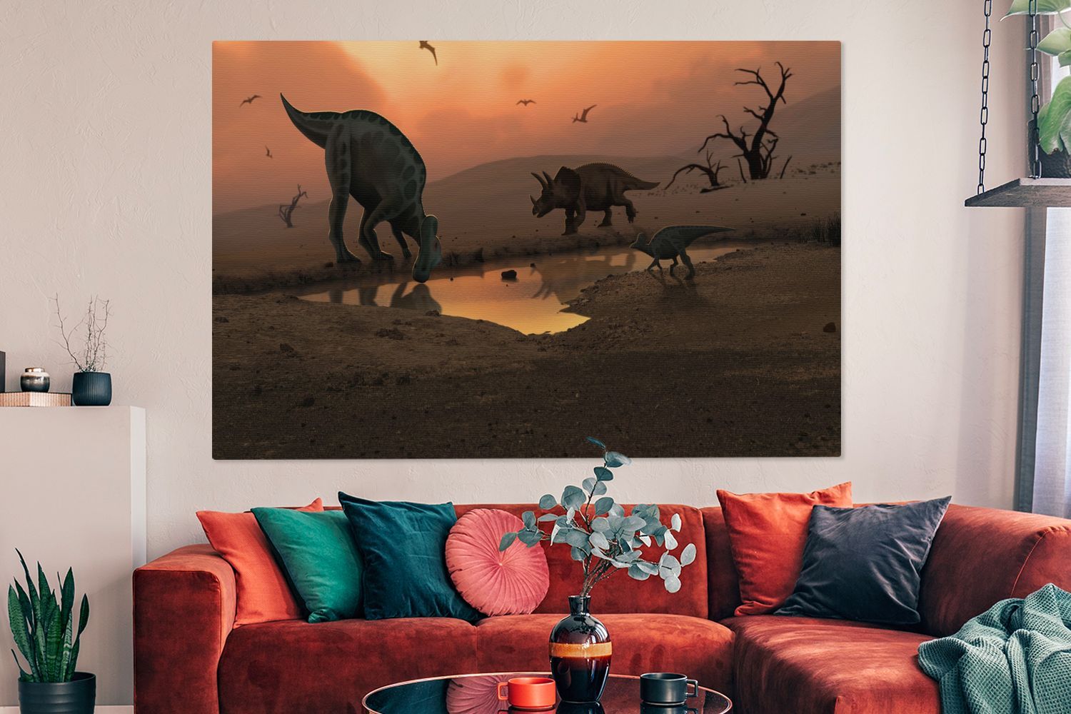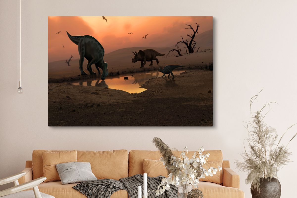 Leinwandbilder - 150x100 cm - Dinosaurier - Wilde Tiere - Zeichnung (Gr. 150x100 cm)