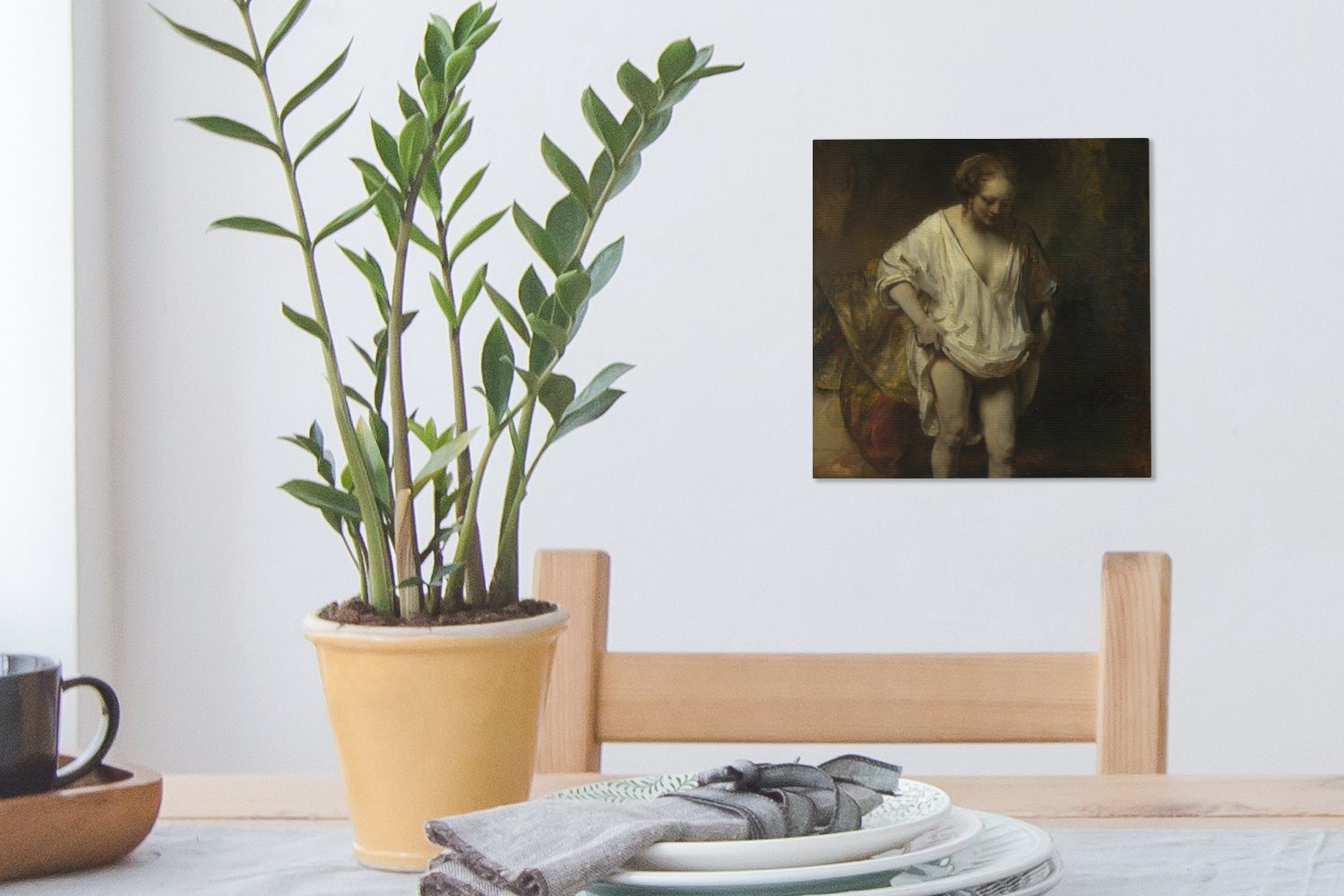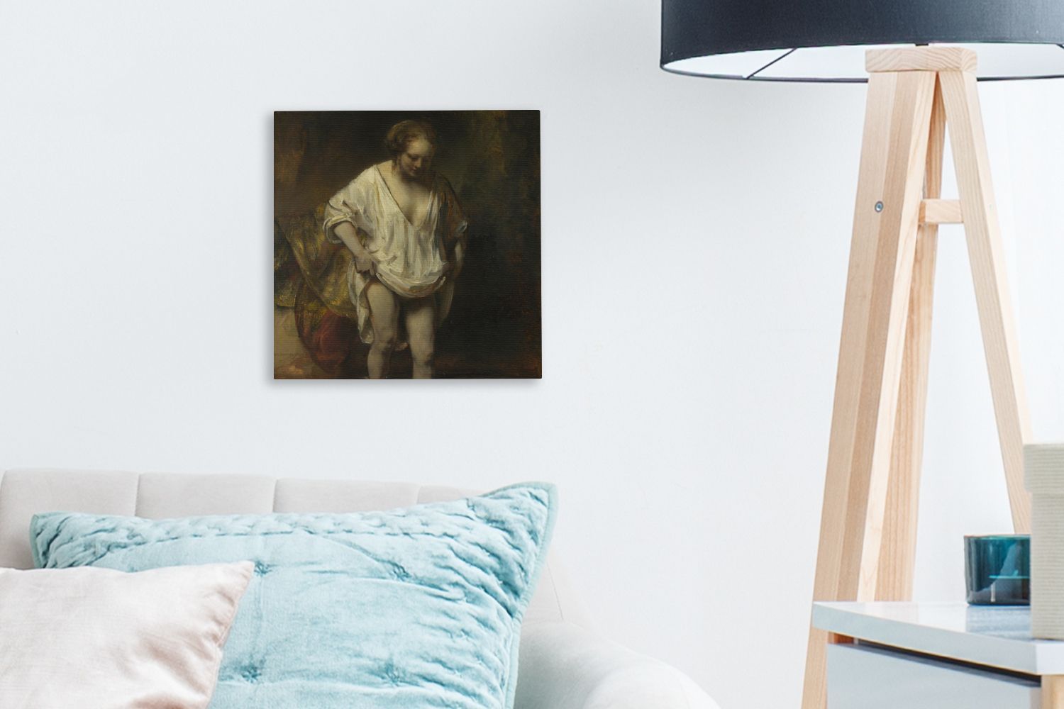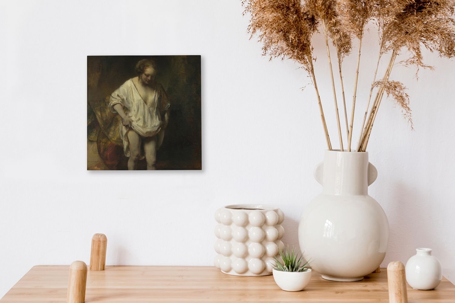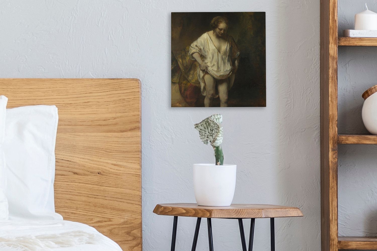 Leinwandbilder - 20x20 cm - Badende Frau - Gemälde von Rembrandt van Rijn