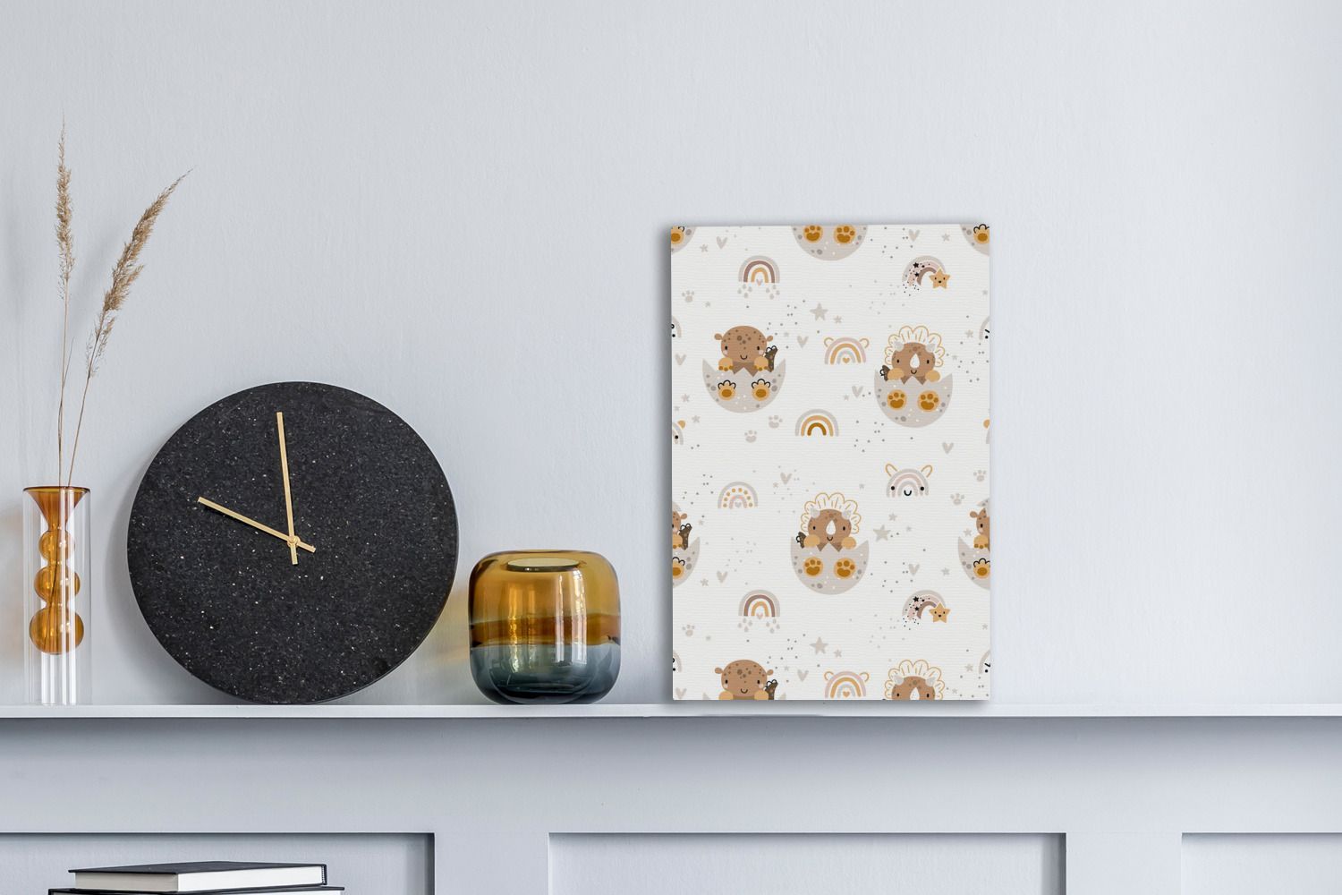 Leinwandbilder - 20x30 cm - Muster - Dinosaurier - Regenbogen (Gr. 20x30 cm)