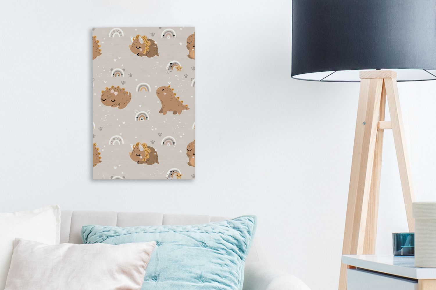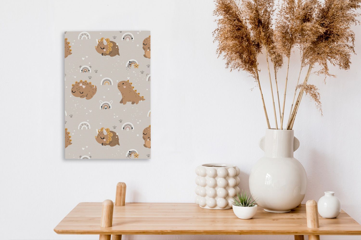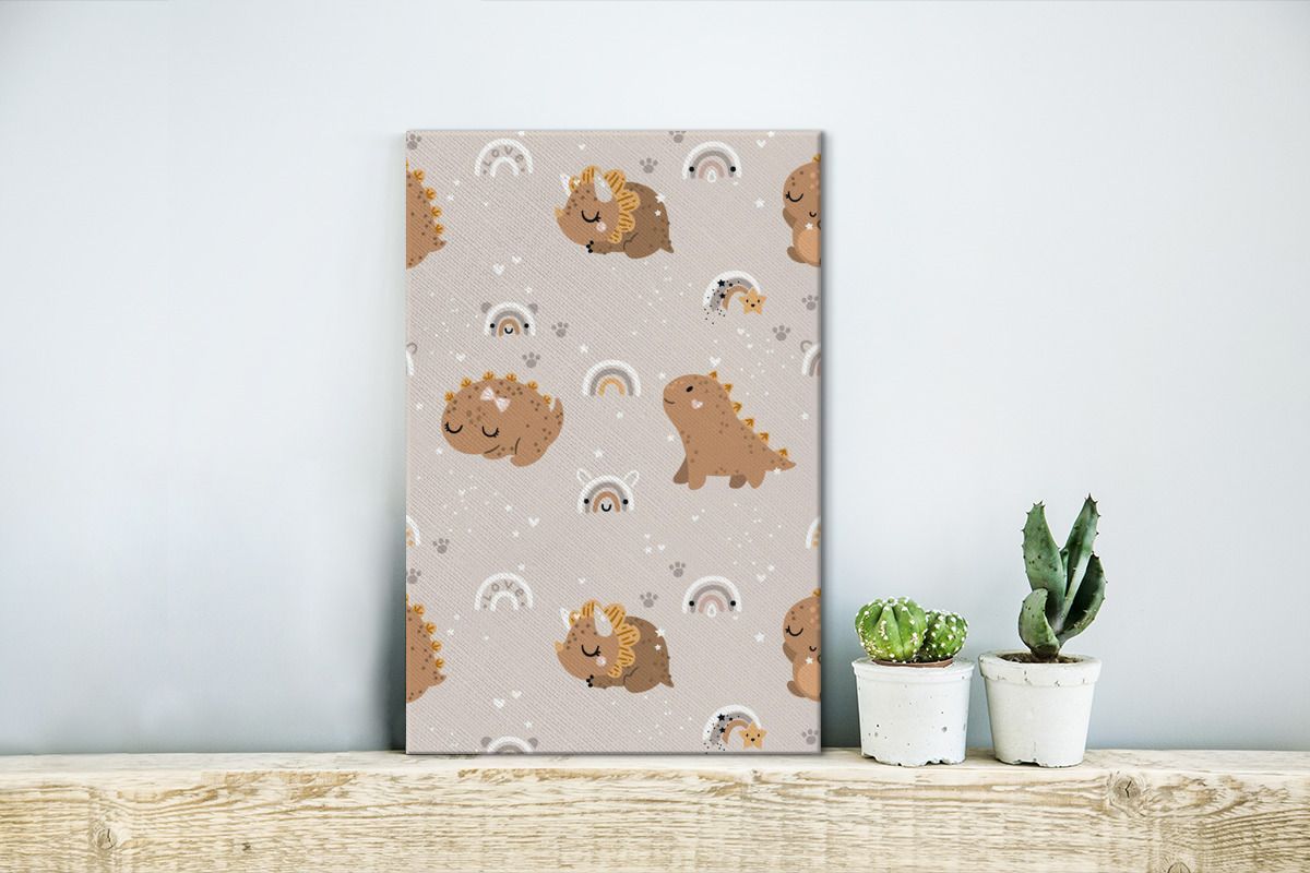 Leinwandbilder - 20x30 cm - Muster - Regenbogen - Dinosaurier (Gr. 20x30 cm)