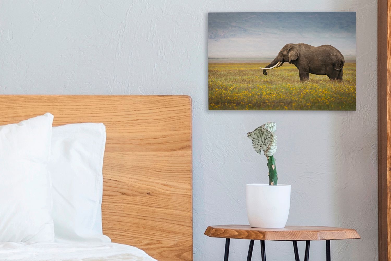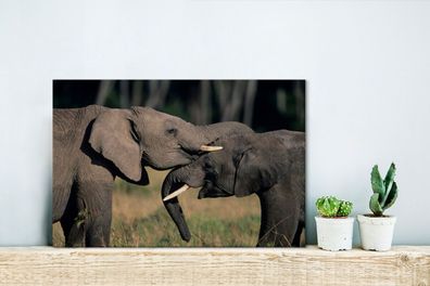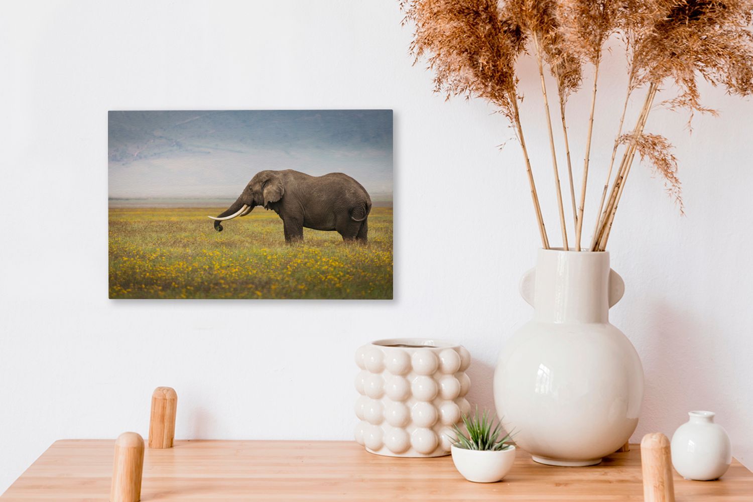 Leinwandbilder - 30x20 cm - Weidender Elefant in der Natur Afrikas (Gr. 30x20 cm)