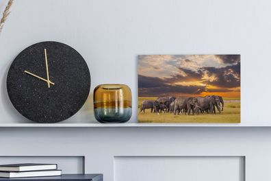 • Leinwandbilder - 30x20 cm - Elefantenherde bei Sonnenuntergang (Gr. 30x20 cm)