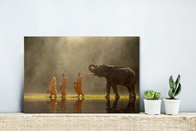 • Leinwandbilder - 30x20 cm - Elefant mit Mönchen (Gr. 30x20 cm)