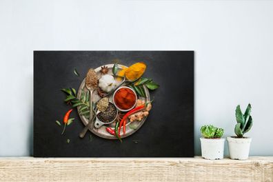• Leinwandbilder - 30x20 cm - Kräuter auf Silberteller (Gr. 30x20 cm)