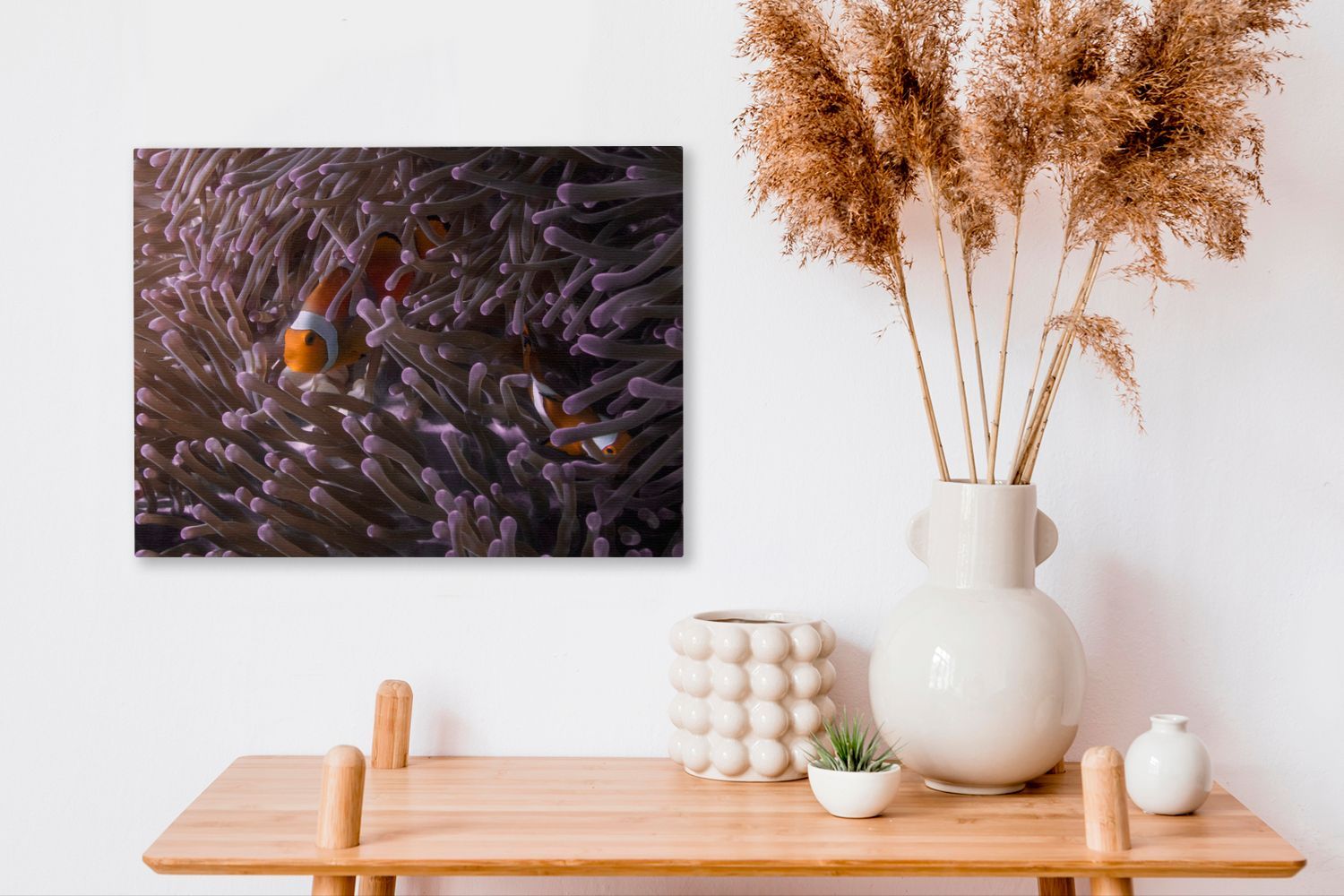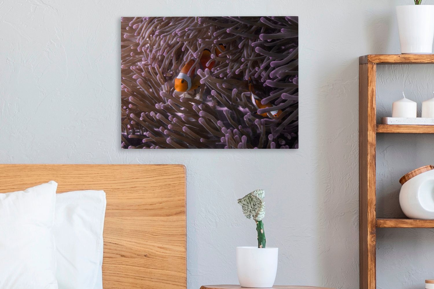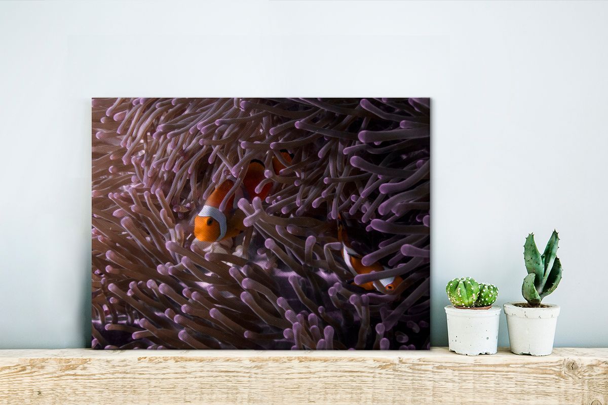 Leinwandbilder - 40x30 cm - Clownfisch versteckt zwischen den Seeanemonen